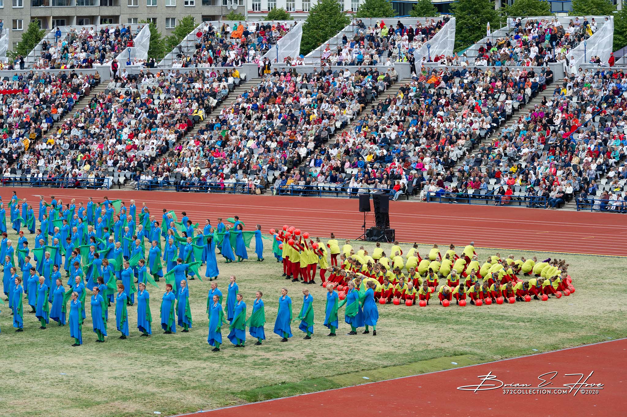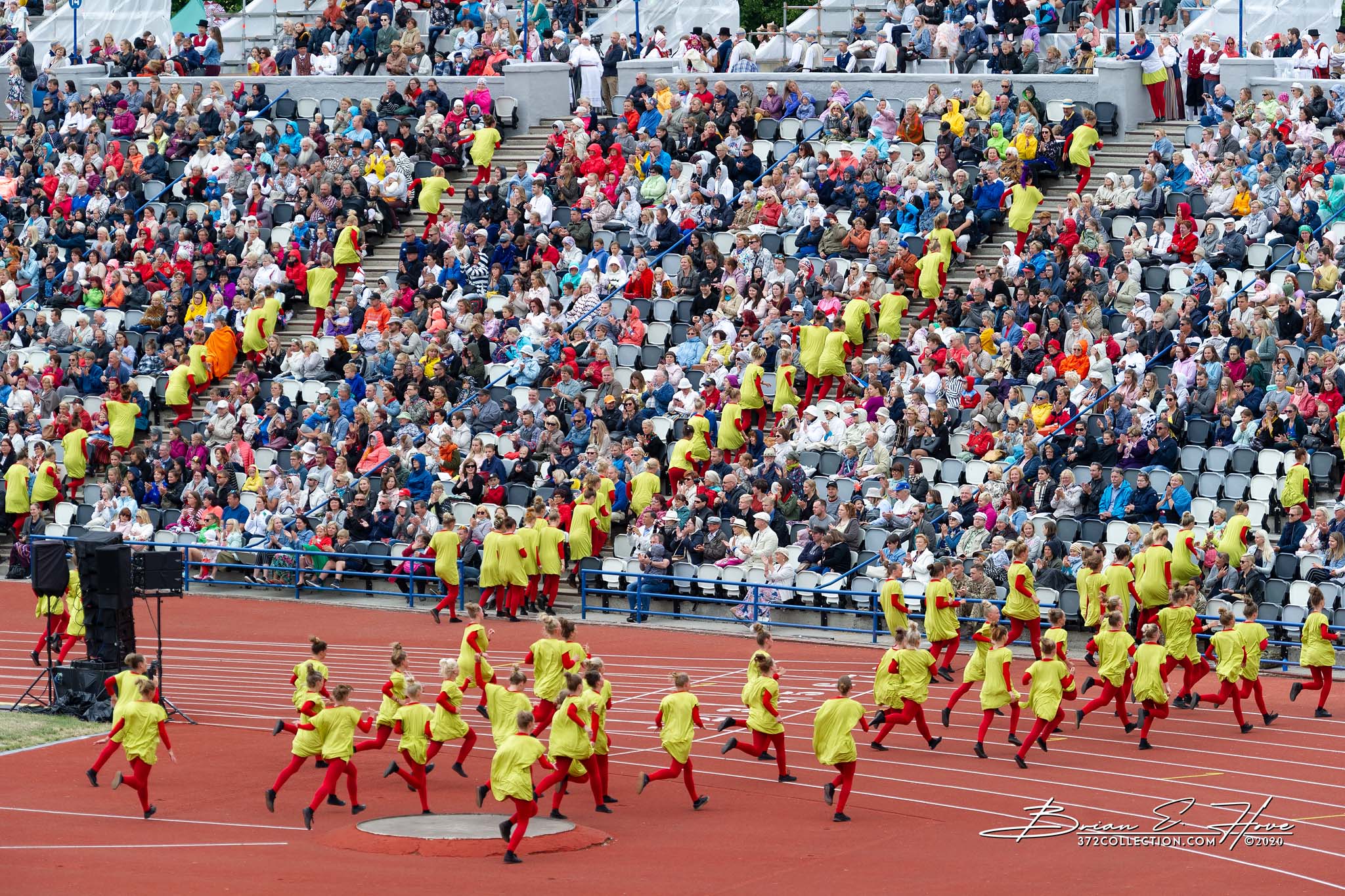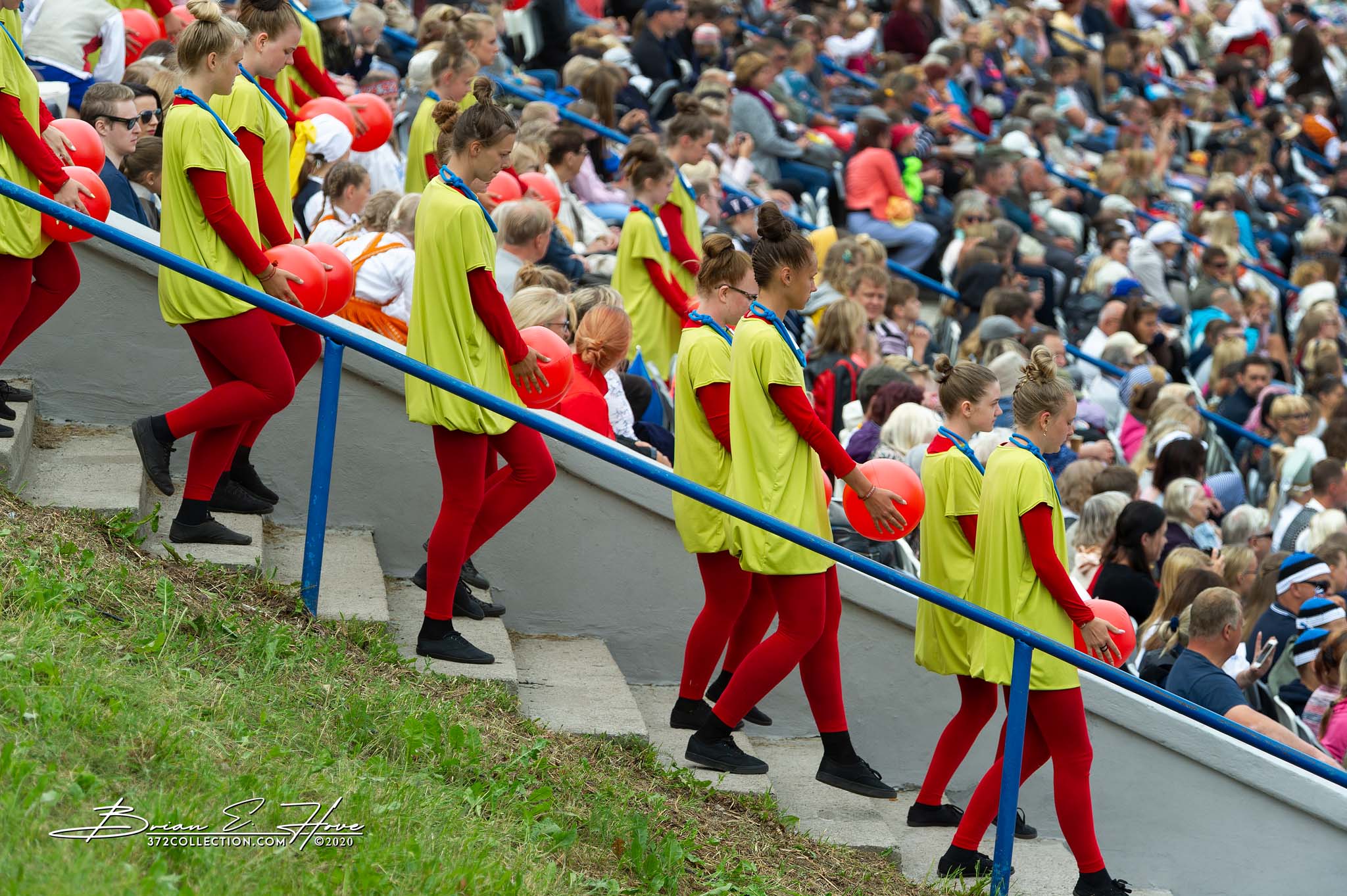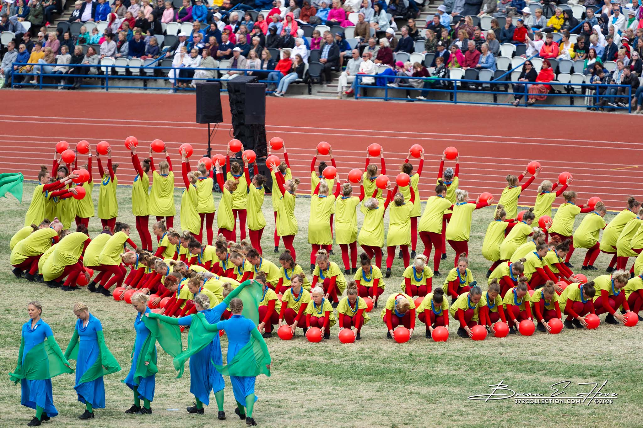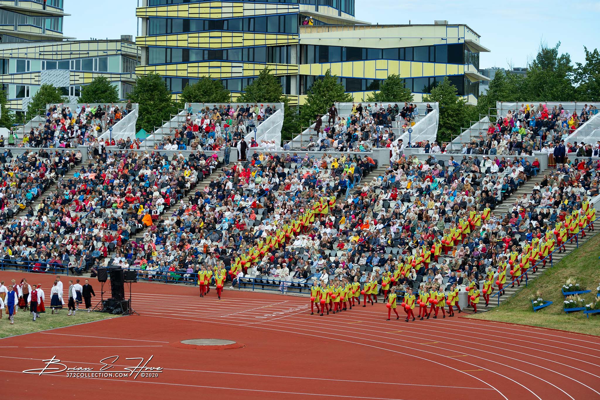 This set of photos documents a two-hour “live” run-through prior to the first of three Dance performances taking place over a two-day period. Even though, it’s “just” practice, the stands are clearly full. This view is from the southwest end of Kalevi Stadium. The performances were beautiful works of art. Each routine is wonderfully choregraphed and perfectly executed as it unfolds into multiple patterns of varying shapes and colors which, then, morphs into a new performance by a different group. It was like viewing a giant kaleidoscope. Simply stunning.