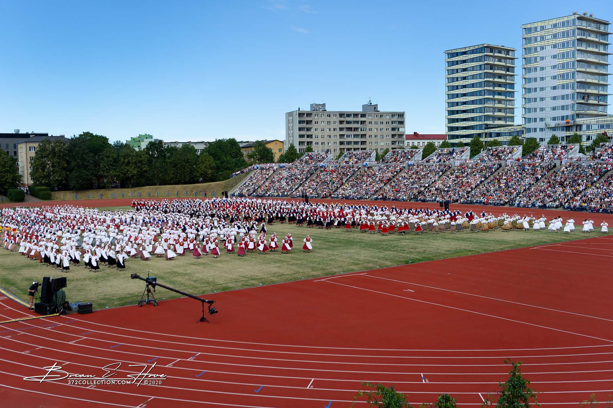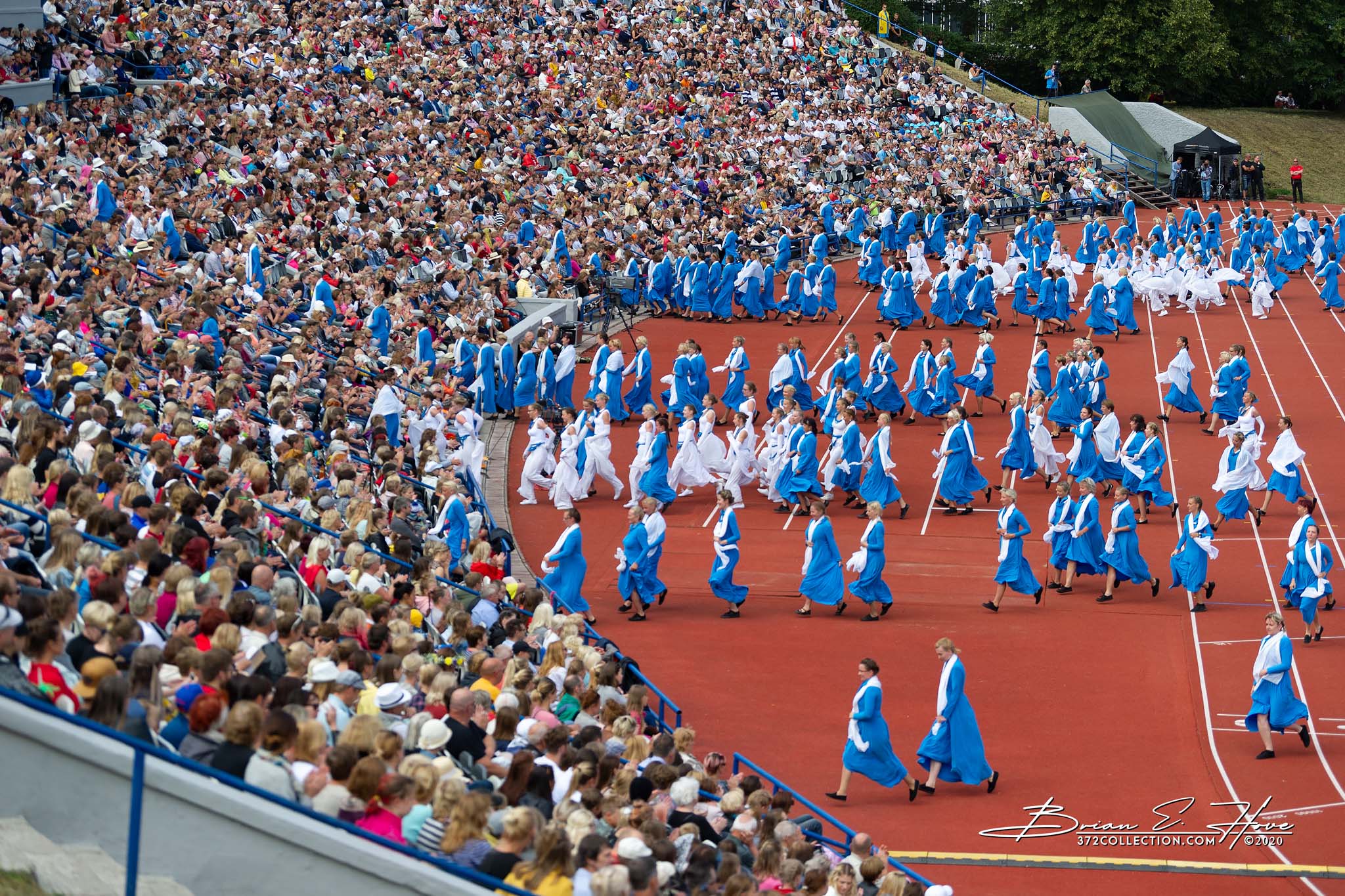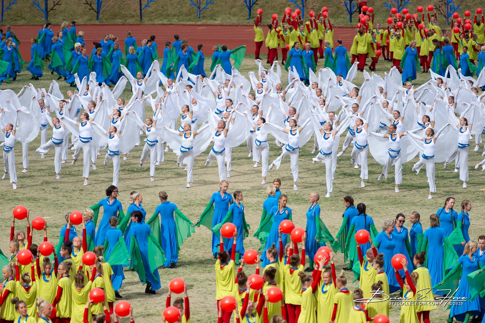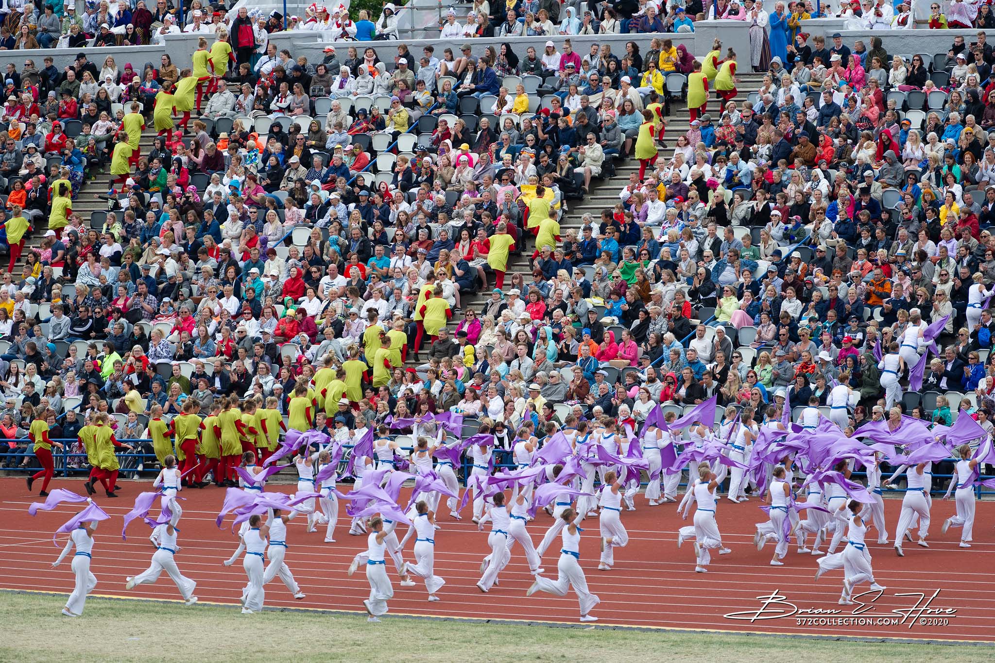 This set of photos documents a two-hour “live” run-through prior to the first of three Dance performances taking place over a two-day period. Even though, it’s “just” practice, the stands are clearly full. This view is from the southwest end of Kalevi Stadium. The performances were beautiful works of art. Each routine is wonderfully choregraphed and perfectly executed as it unfolds into multiple patterns of varying shapes and colors which, then, morphs into a new performance by a different group. It was like viewing a giant kaleidoscope. Simply stunning.