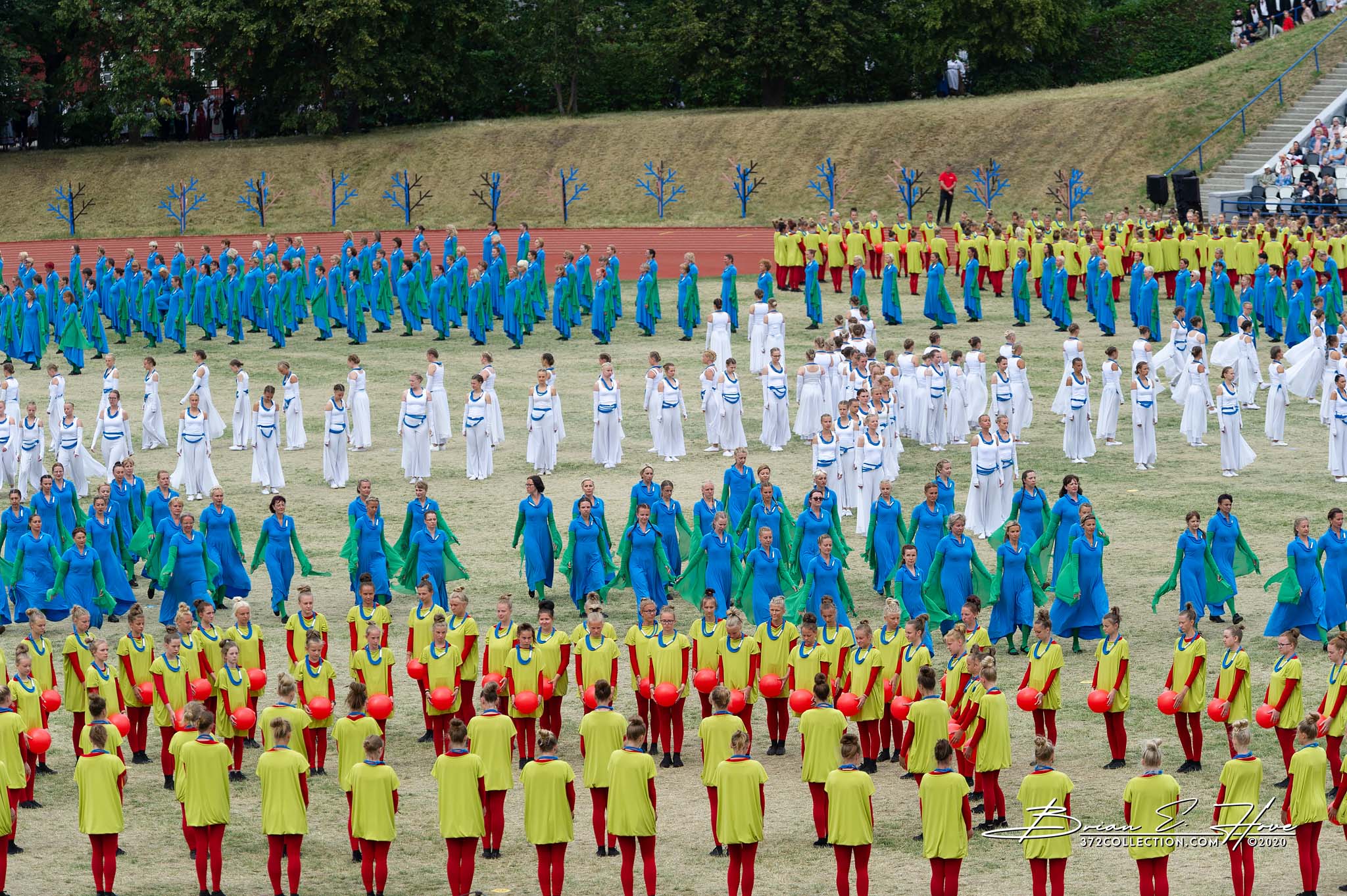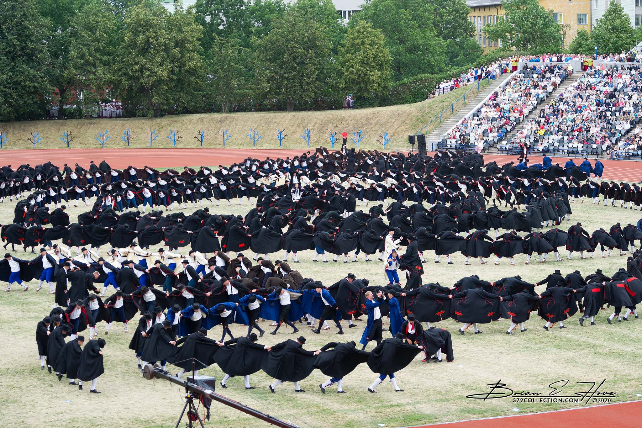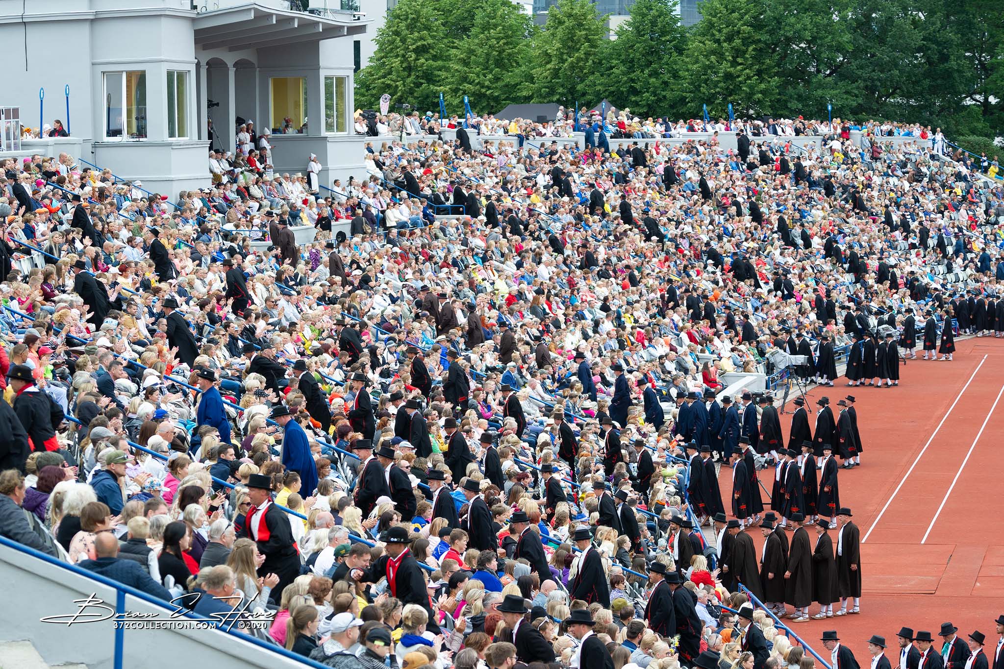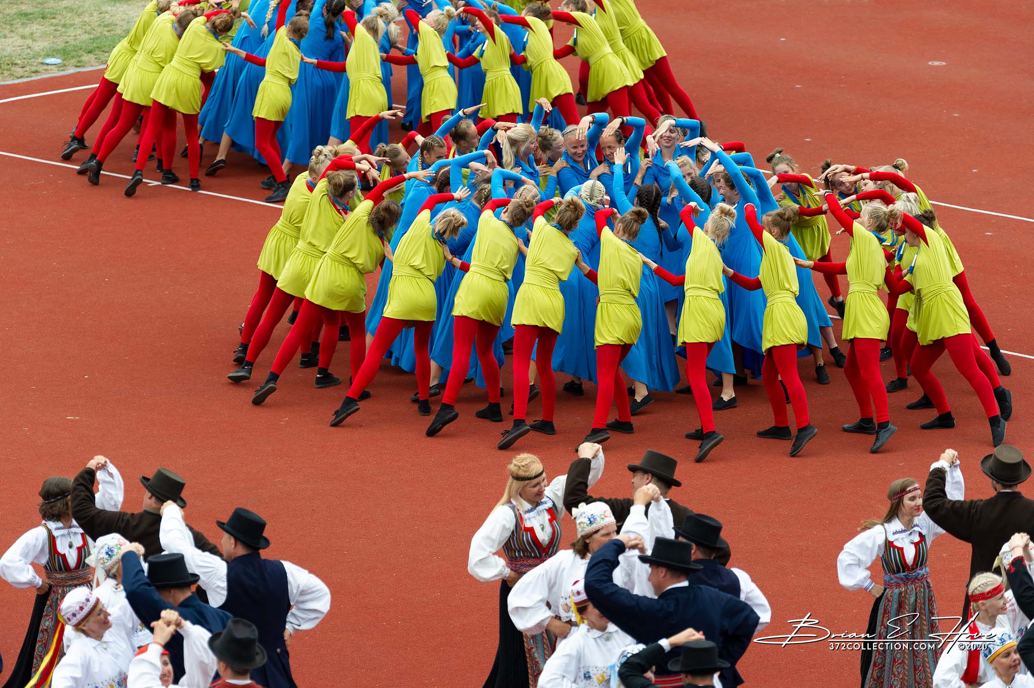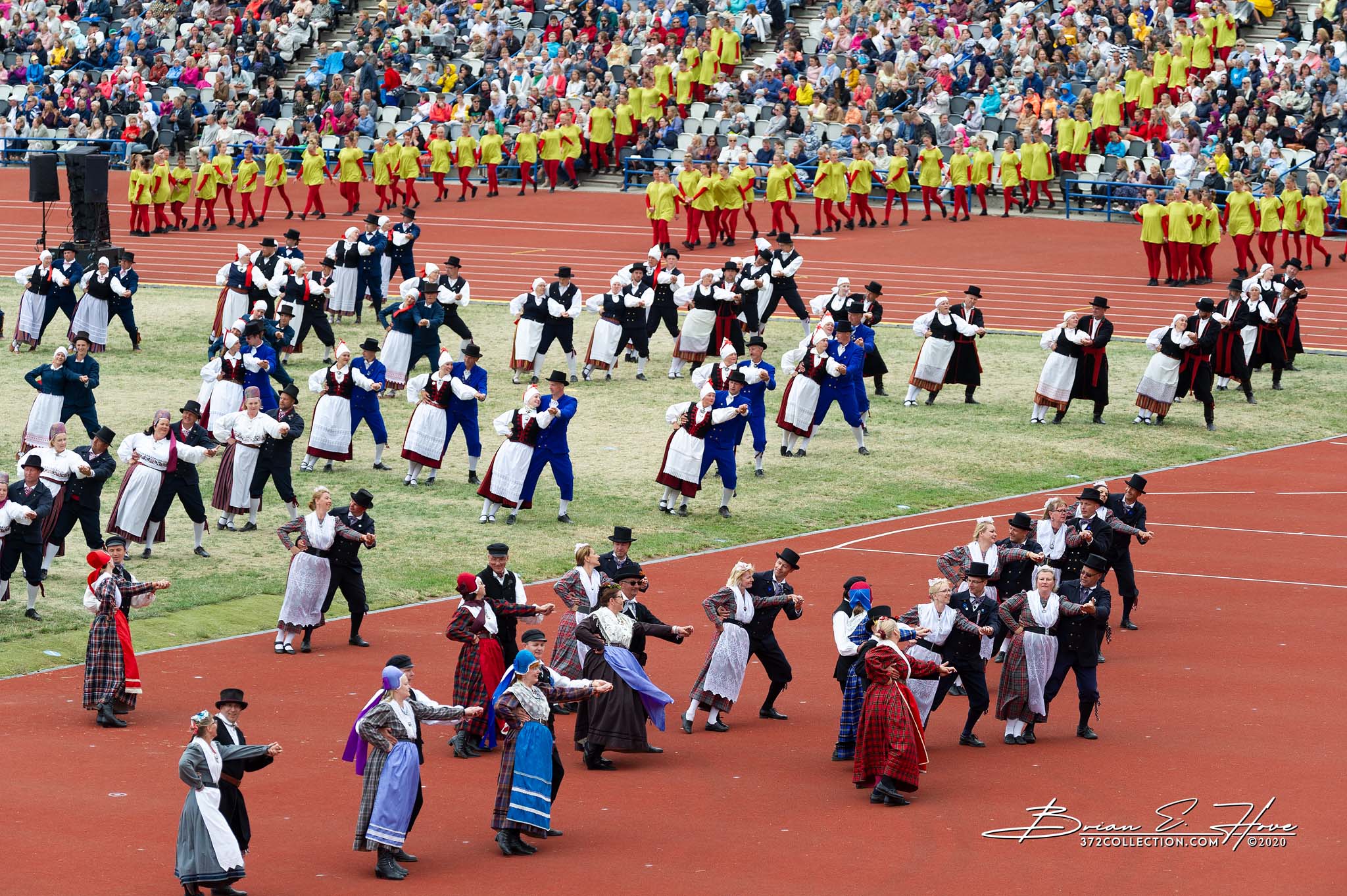 This set of photos documents a two-hour “live” run-through prior to the first of three Dance performances taking place over a two-day period. Even though, it’s “just” practice, the stands are clearly full. This view is from the southwest end of Kalevi Stadium. The performances were beautiful works of art. Each routine is wonderfully choregraphed and perfectly executed as it unfolds into multiple patterns of varying shapes and colors which, then, morphs into a new performance by a different group. It was like viewing a giant kaleidoscope. Simply stunning.