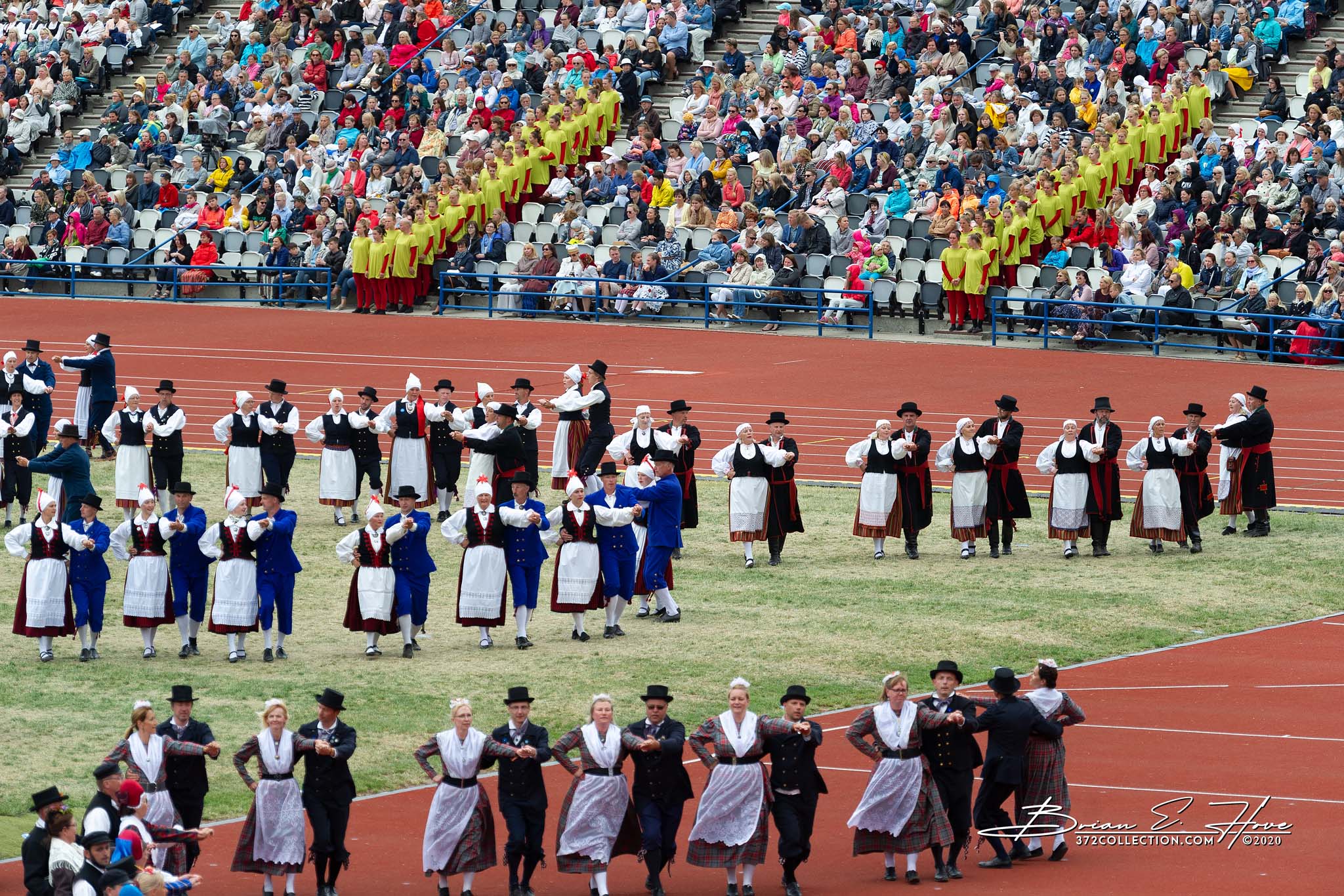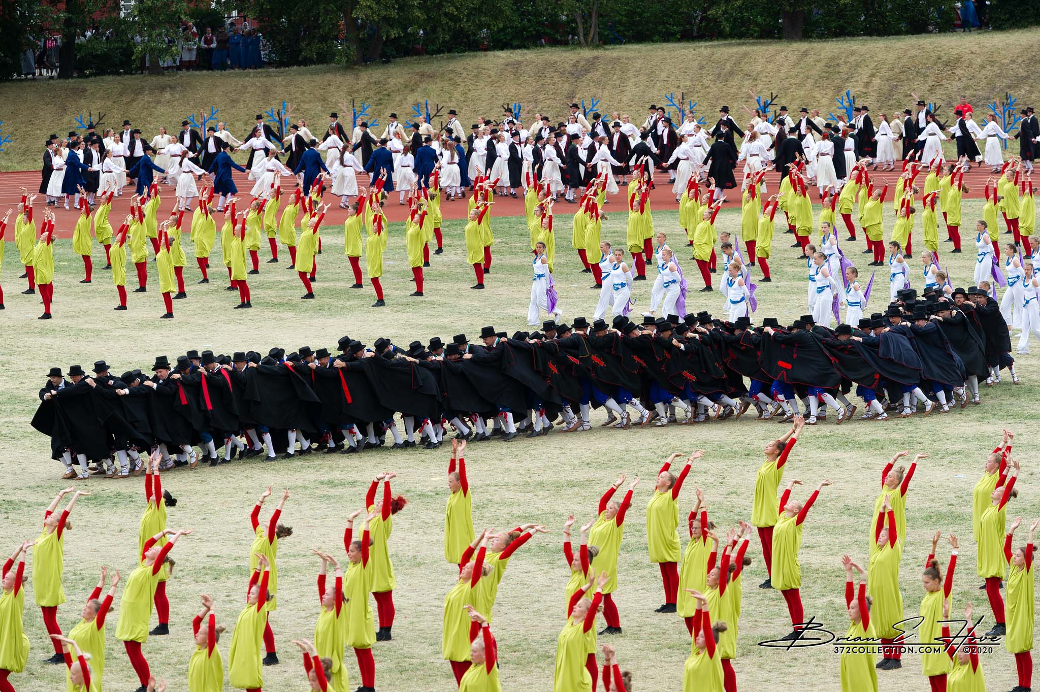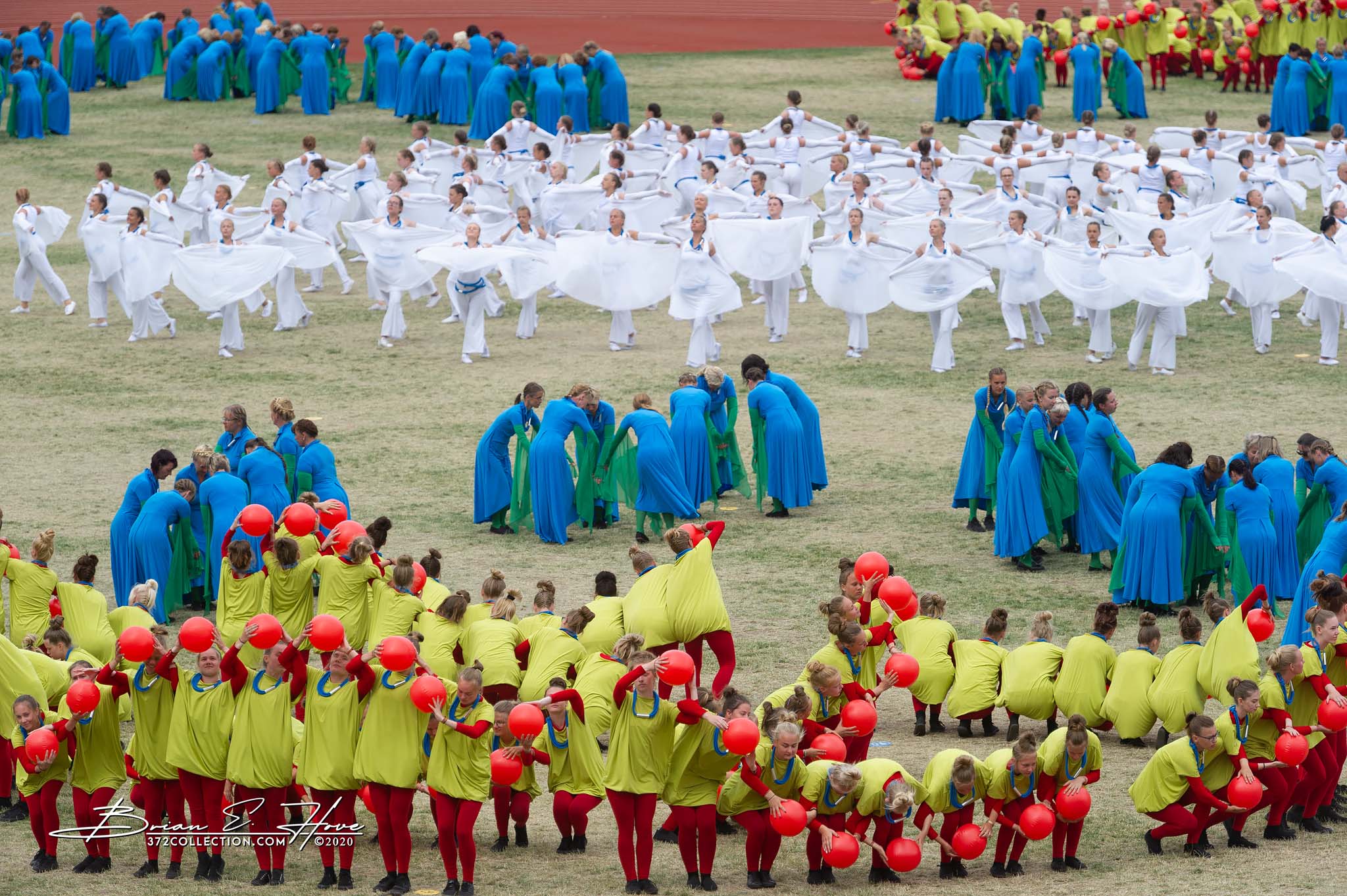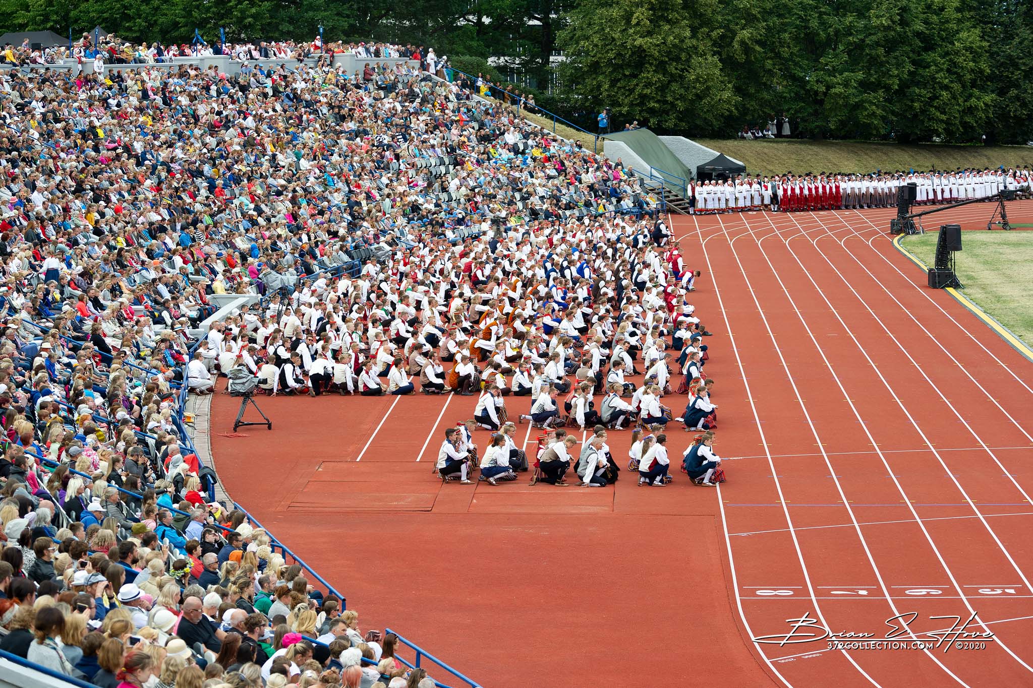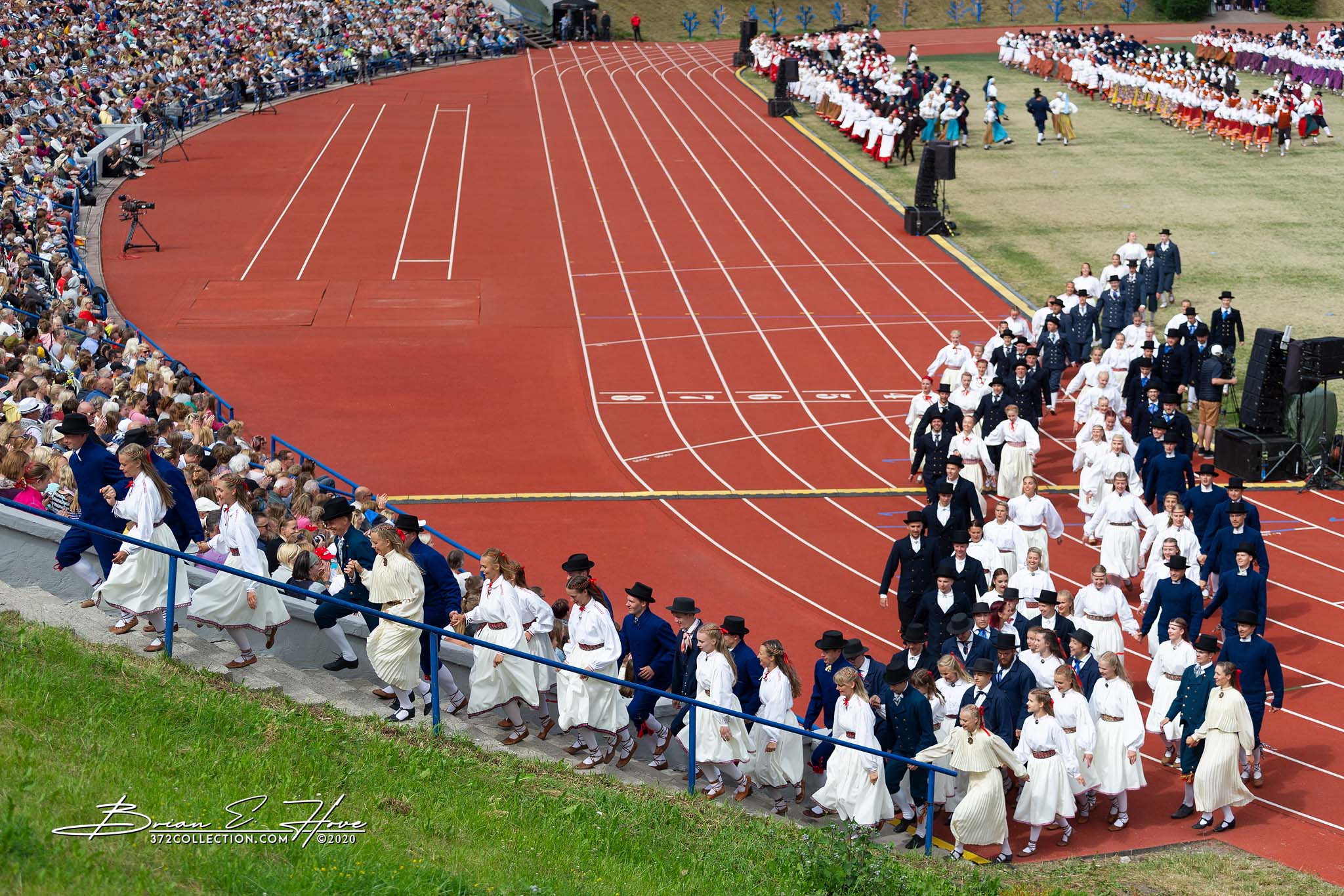 This set of photos documents a two-hour “live” run-through prior to the first of three Dance performances taking place over a two-day period. Even though, it’s “just” practice, the stands are clearly full. This view is from the southwest end of Kalevi Stadium. The performances were beautiful works of art. Each routine is wonderfully choregraphed and perfectly executed as it unfolds into multiple patterns of varying shapes and colors which, then, morphs into a new performance by a different group. It was like viewing a giant kaleidoscope. Simply stunning.