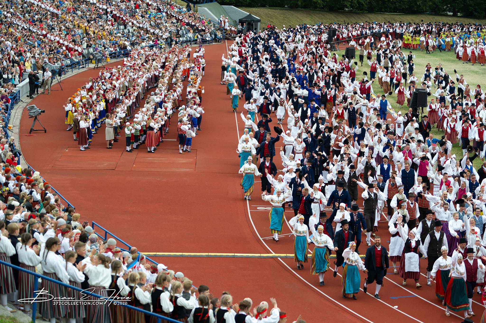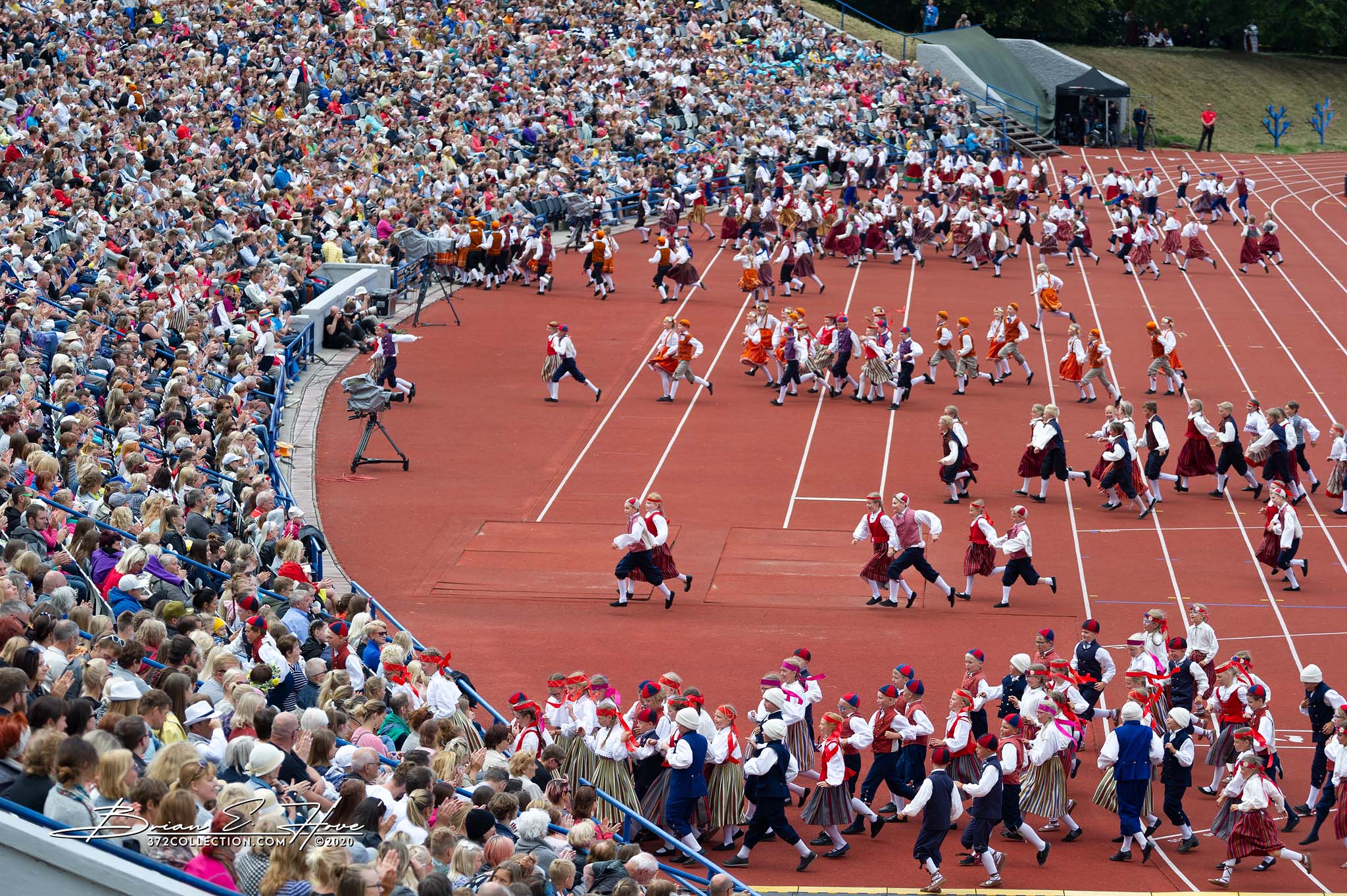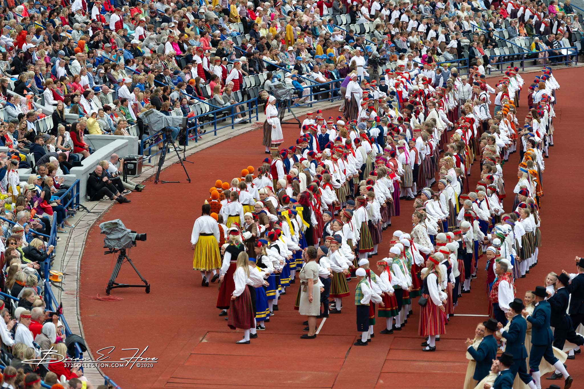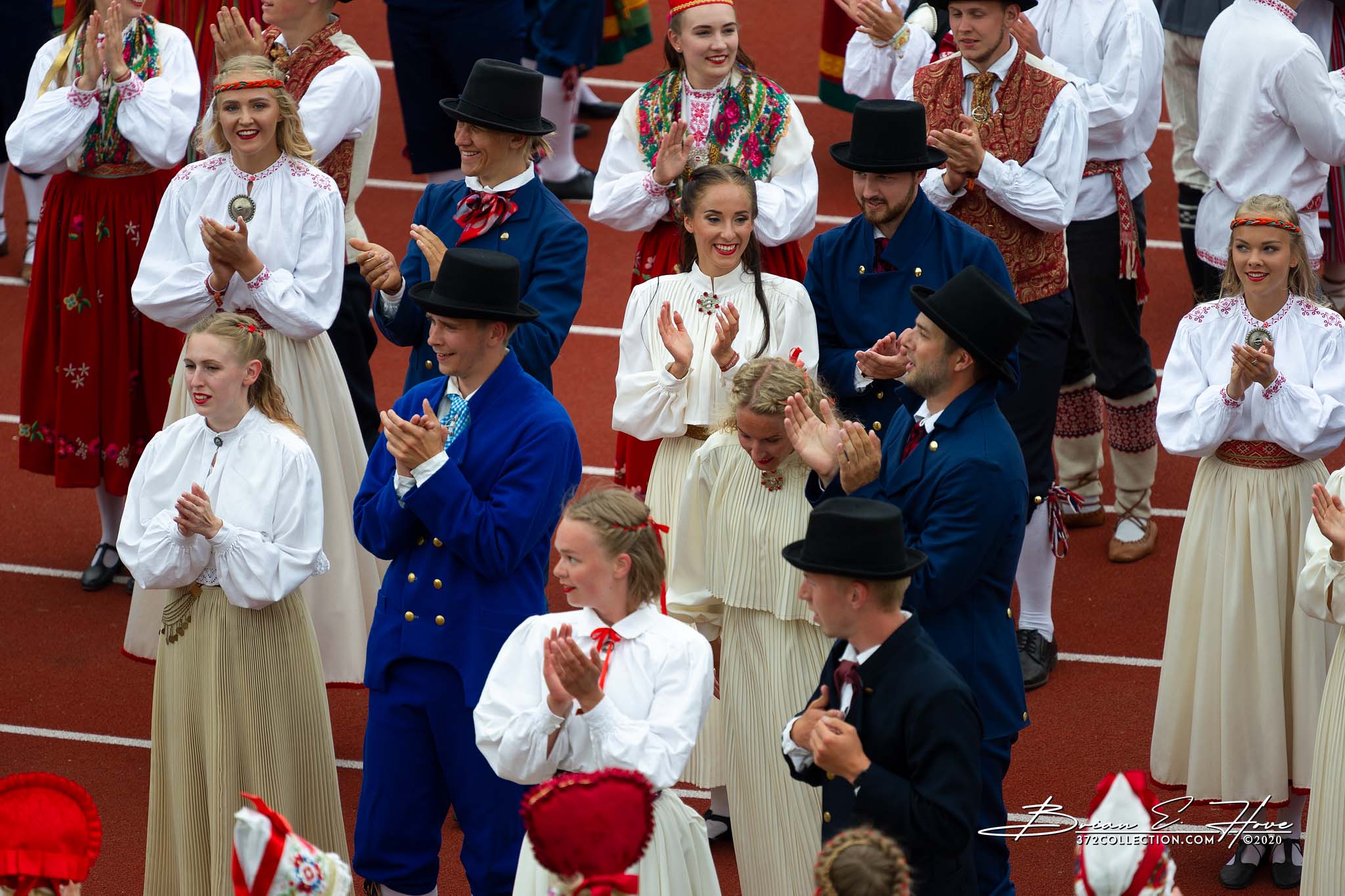 This set of photos documents a two-hour “live” run-through prior to the first of three Dance performances taking place over a two-day period. Even though, it’s “just” practice, the stands are clearly full. This view is from the southwest end of Kalevi Stadium. The performances were beautiful works of art. Each routine is wonderfully choregraphed and perfectly executed as it unfolds into multiple patterns of varying shapes and colors which, then, morphs into a new performance by a different group. It was like viewing a giant kaleidoscope. Simply stunning.