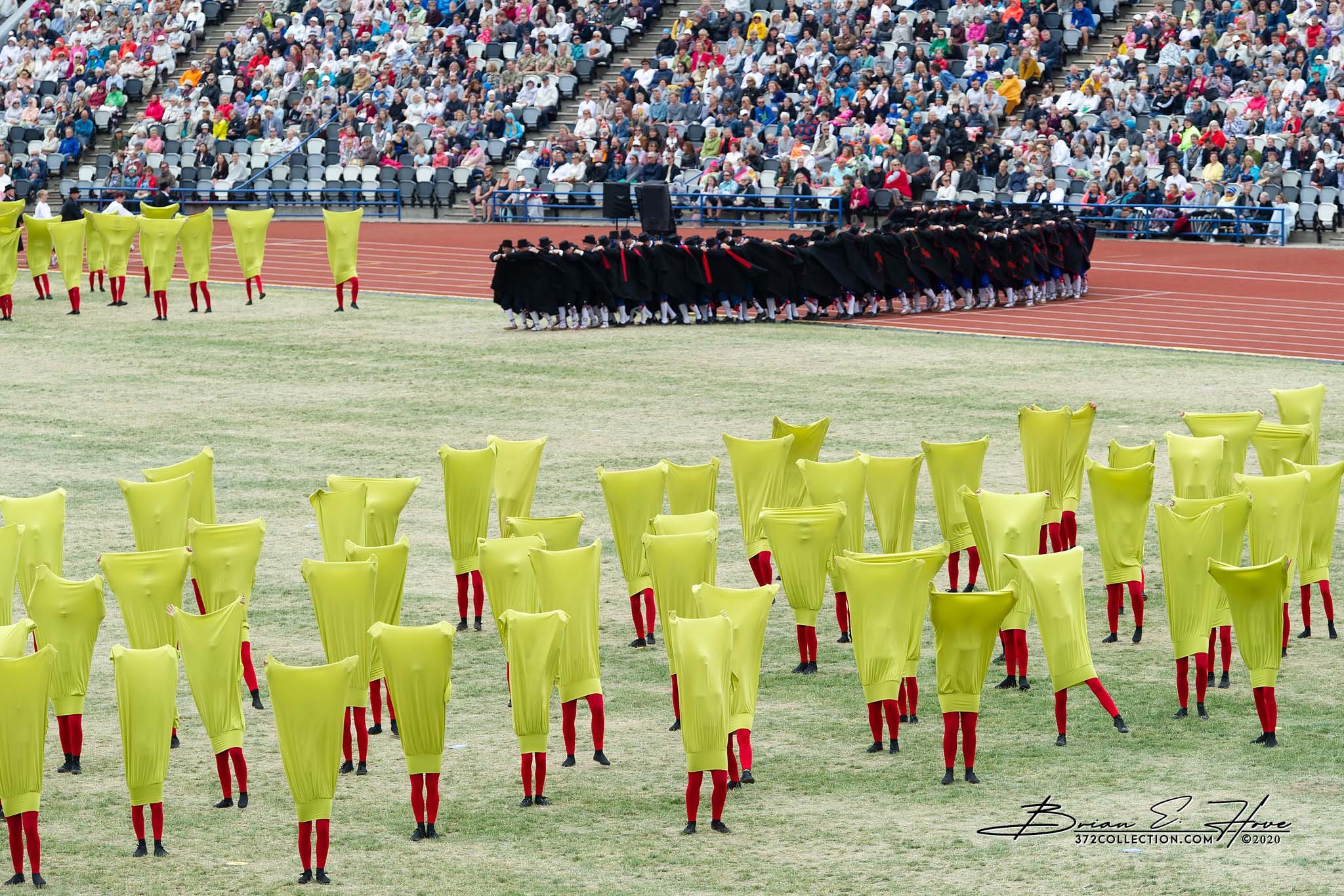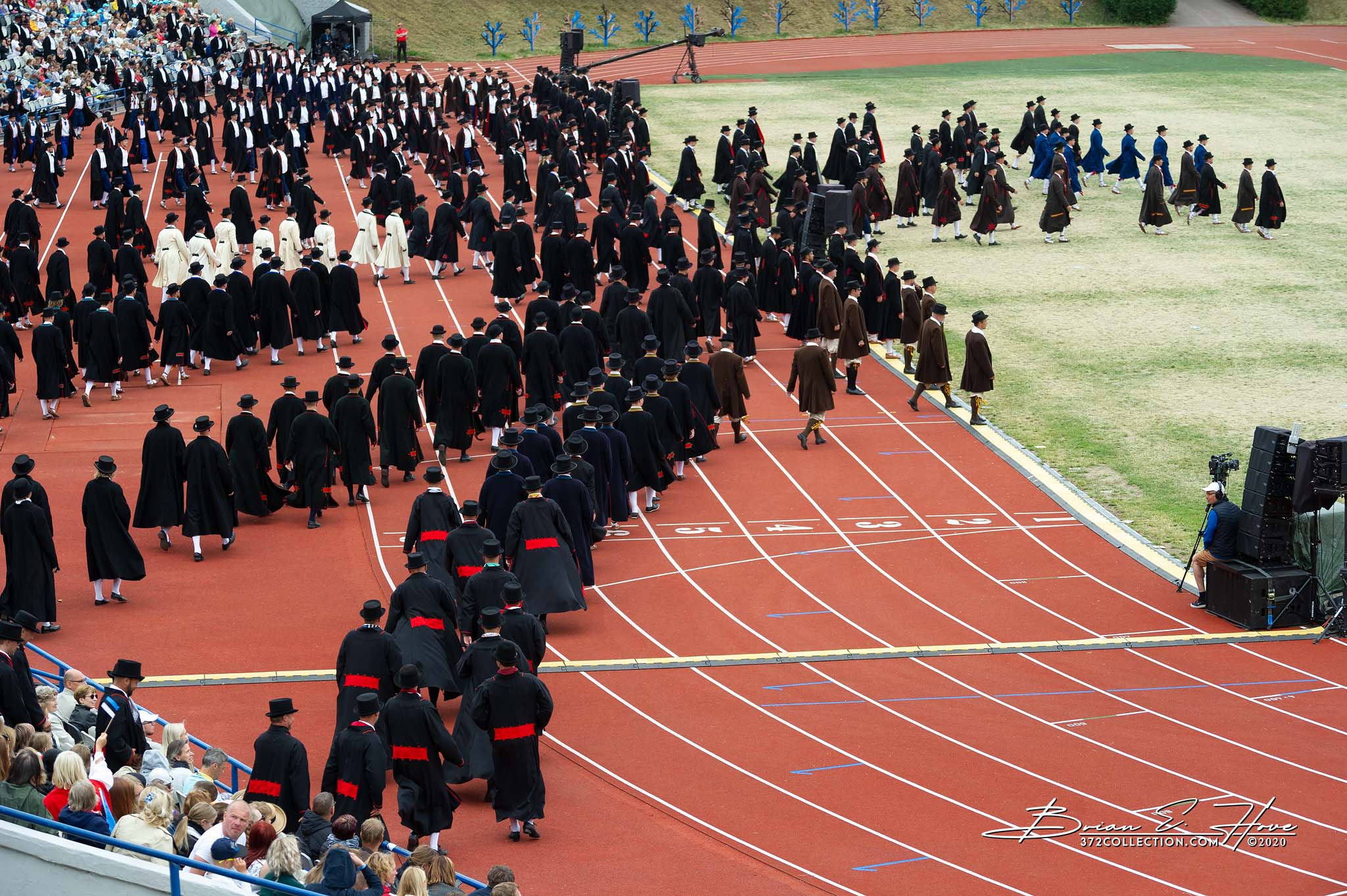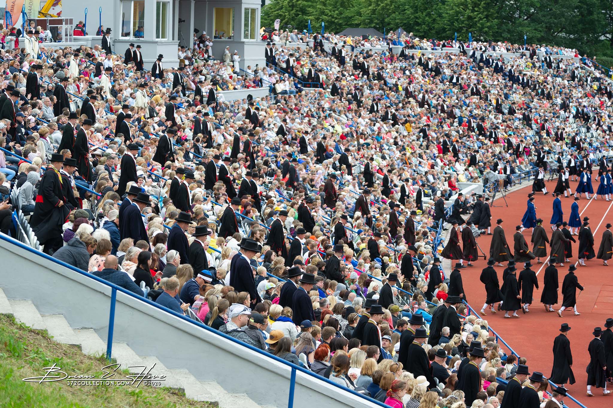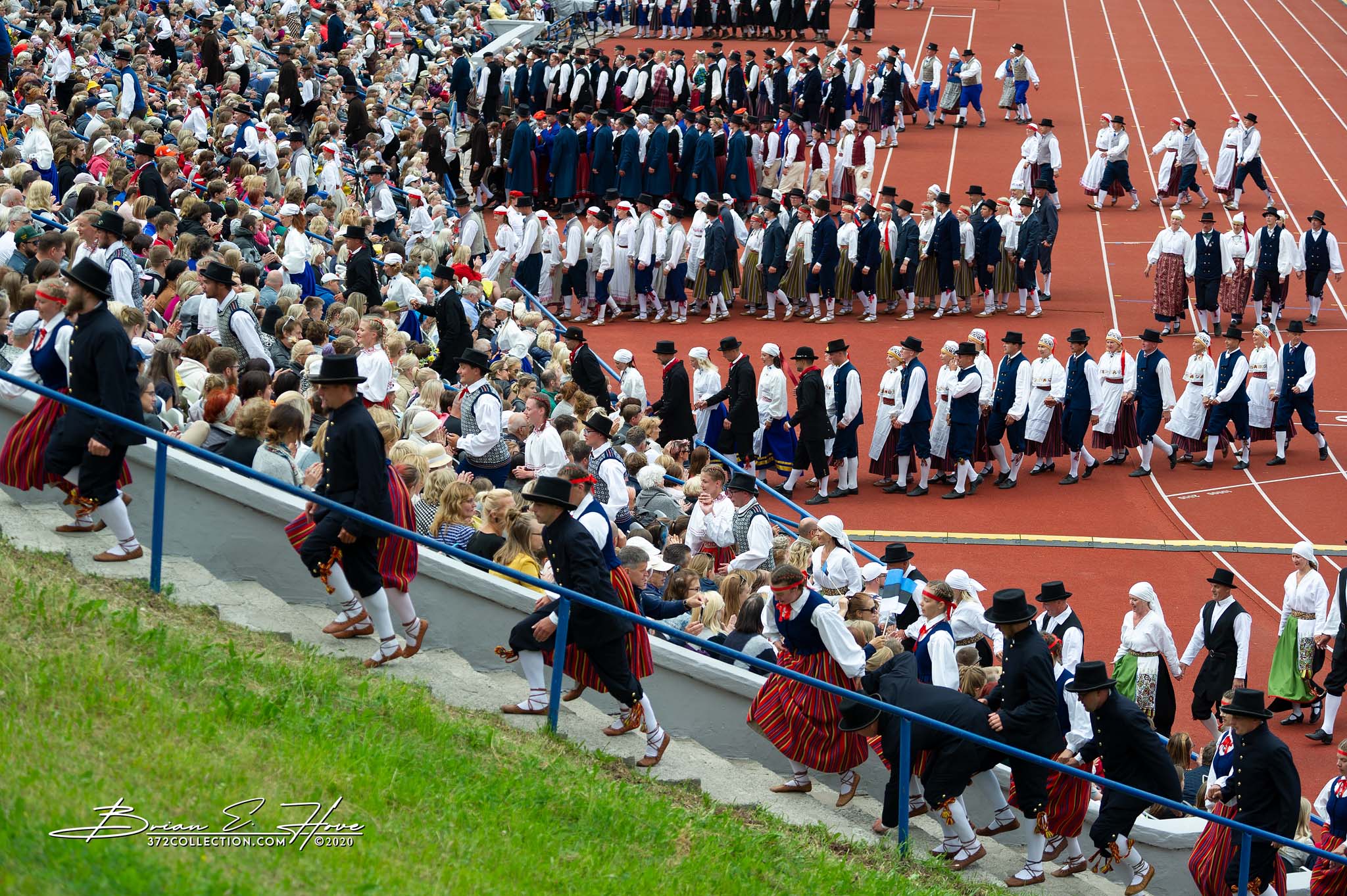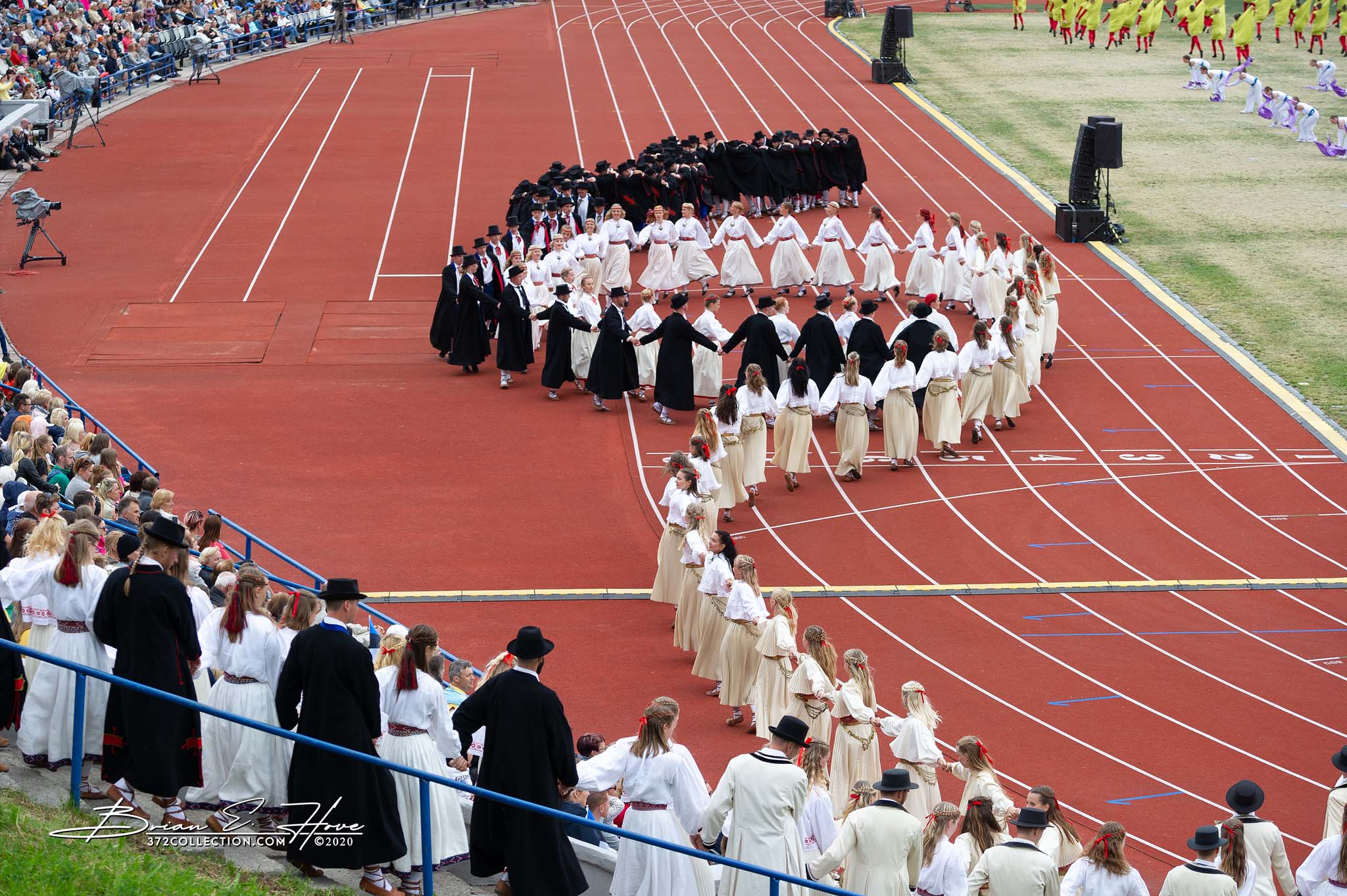 This set of photos documents a two-hour “live” run-through prior to the first of three Dance performances taking place over a two-day period. Even though, it’s “just” practice, the stands are clearly full. This view is from the southwest end of Kalevi Stadium. The performances were beautiful works of art. Each routine is wonderfully choregraphed and perfectly executed as it unfolds into multiple patterns of varying shapes and colors which, then, morphs into a new performance by a different group. It was like viewing a giant kaleidoscope. Simply stunning.