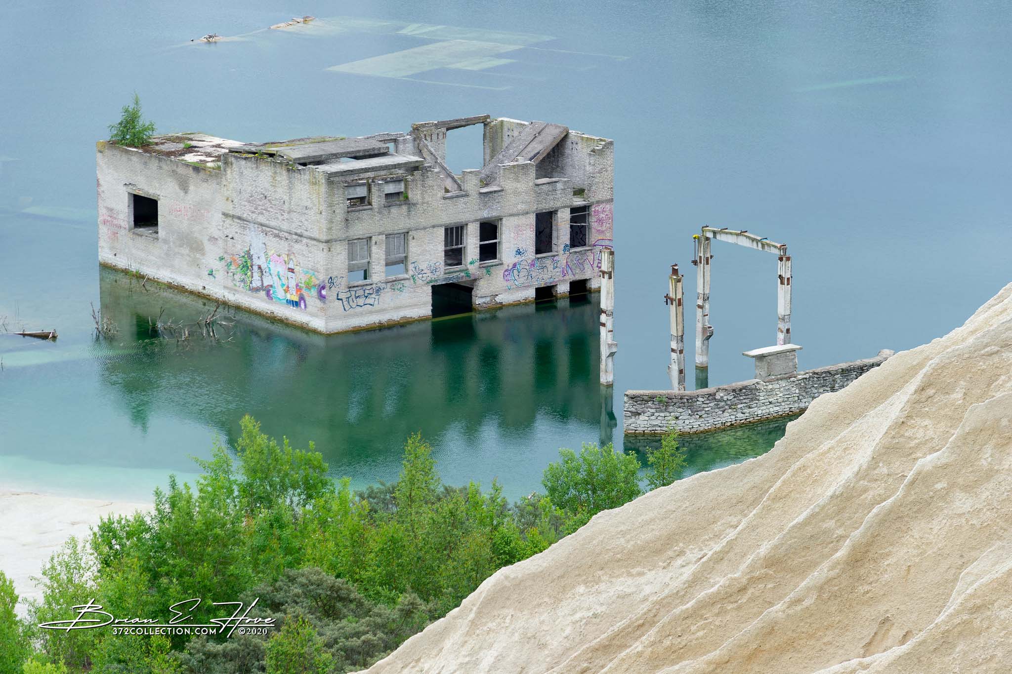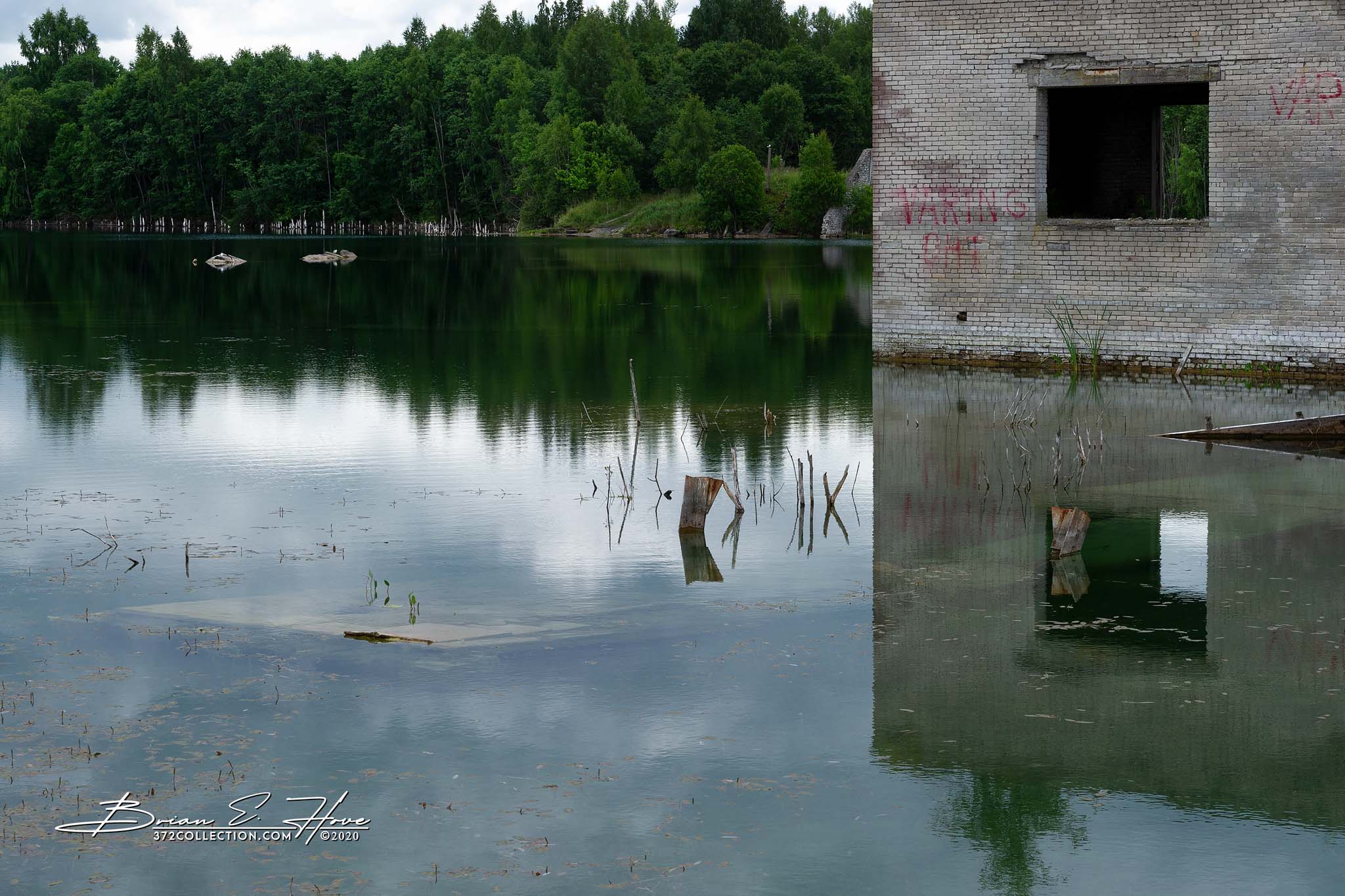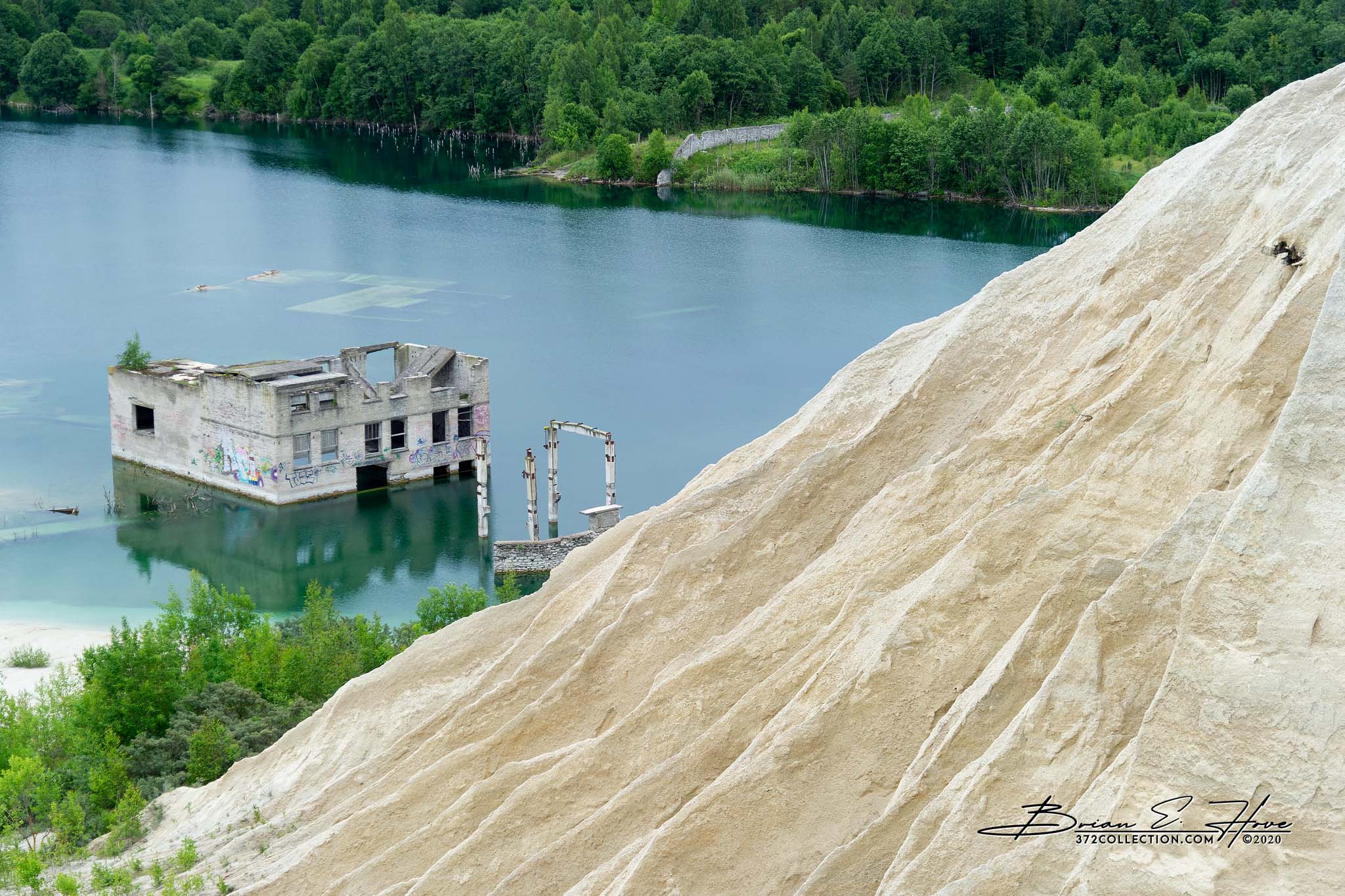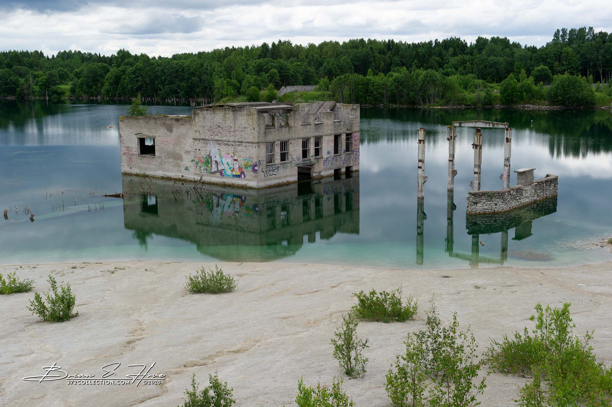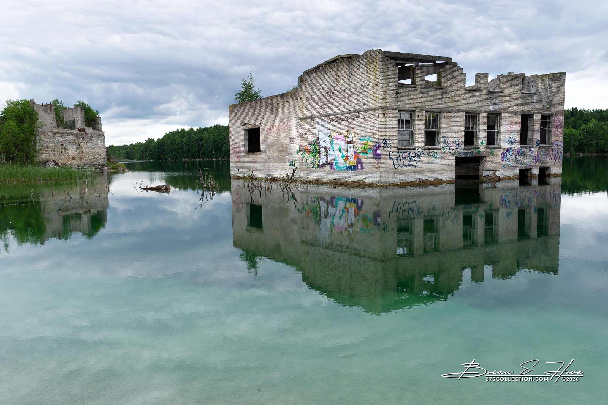 Beginning in the 1930s, Rummu Quarry produced limestone mostly from labor provided by prisons conveniently located nearby. The water table in this area is relatively high, so pumps were required to allow the mine to function. Around the time of Estonia’s re-independence operations were ceased and the pumps turned off. Water quickly filled the quarry encompassing buildings and submerging equipment. Today, the lake offers a sense of tranquility while remnants of the mine provide a surreal visual. Recreational activities, however, are discouraged given the perils lurking just below the surface.