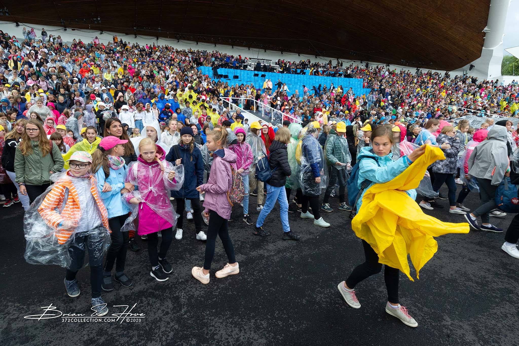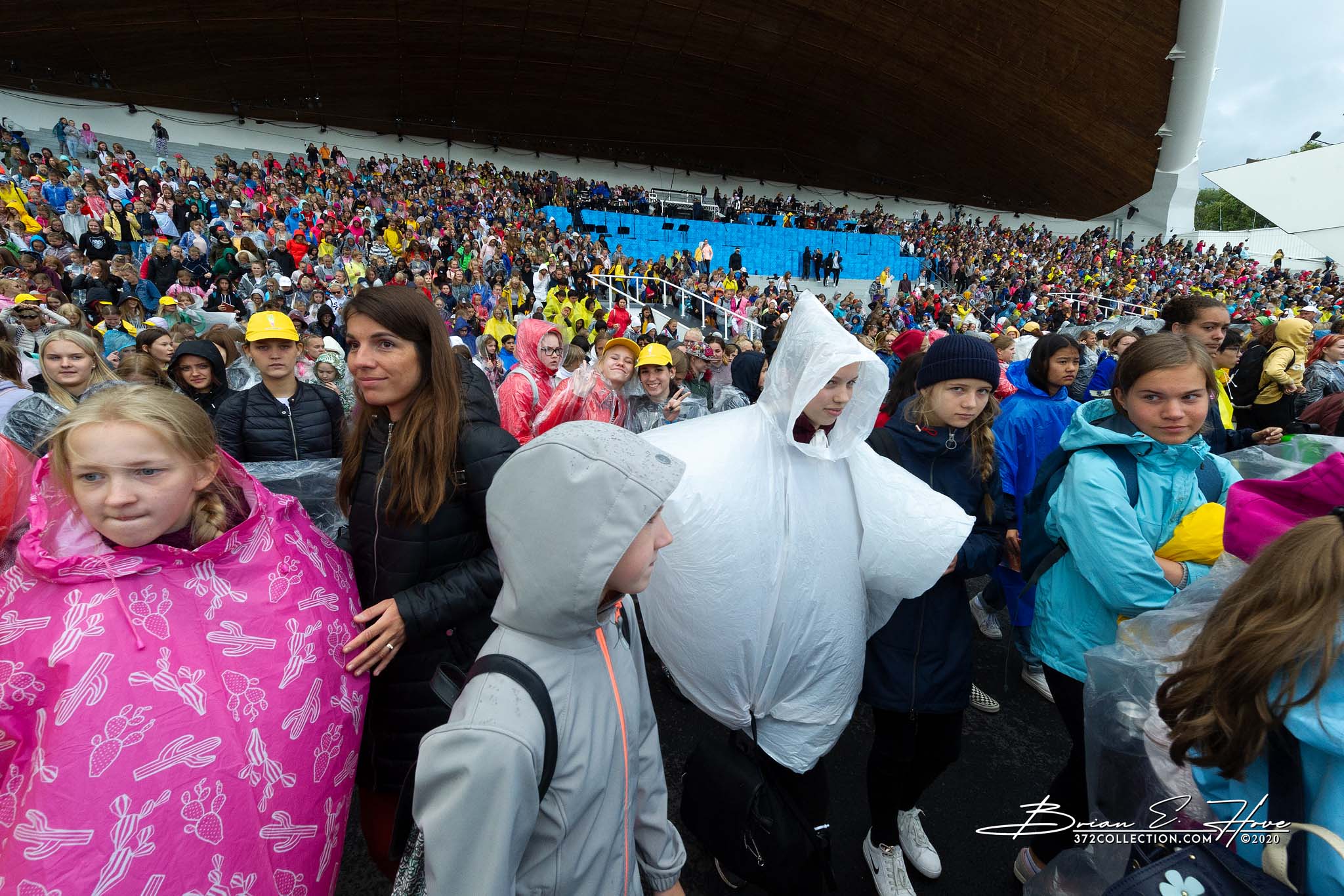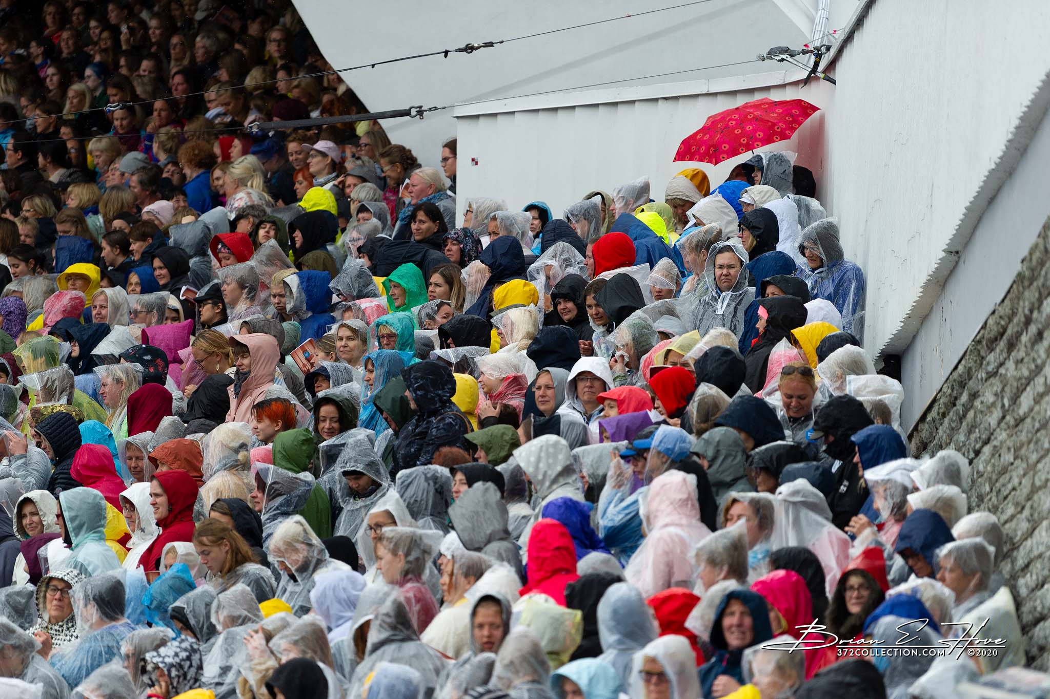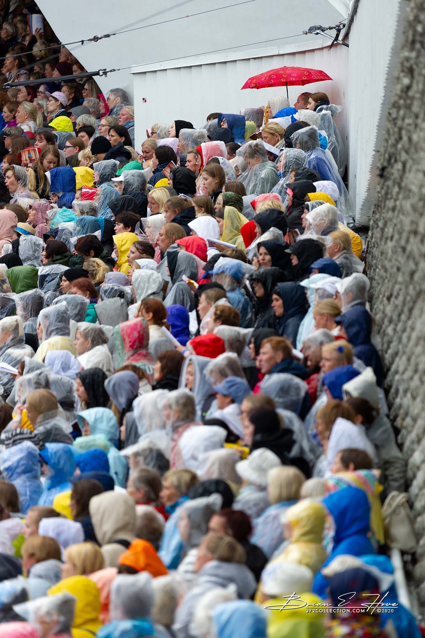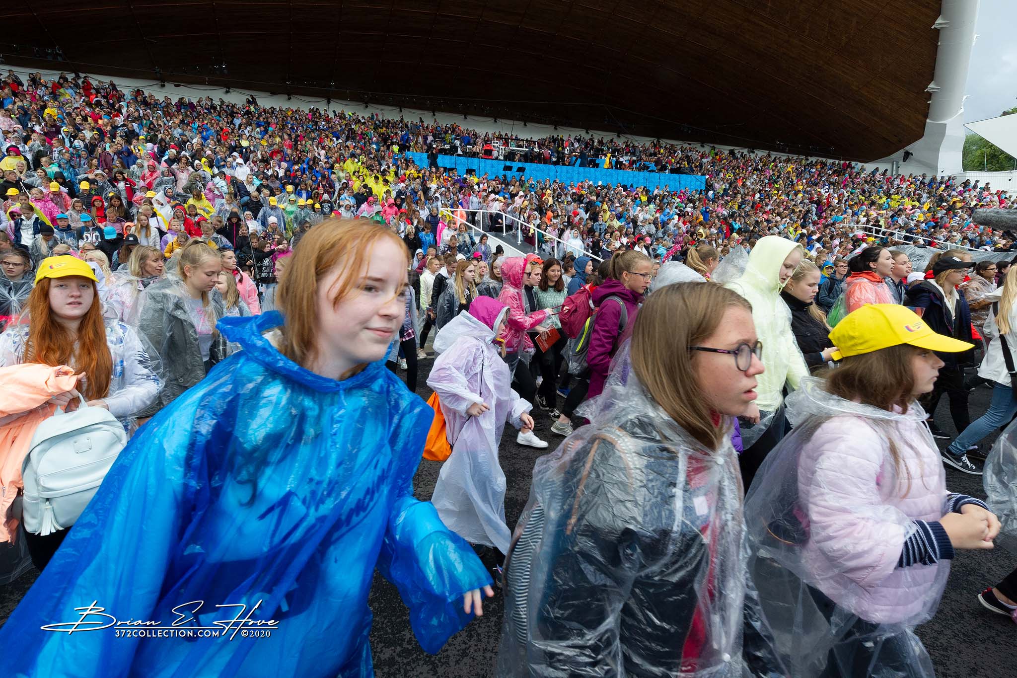 Rain was in the forecast for the weekend. Of course, this was not ideal. Regardless, the show would go on. As it turned out, Mother Nature opened the water faucet on Friday practice rather than Saturday and Sunday’s main events. Regardless, practice would go on. First up, were the youngsters. They persevered through the session, but when it was over they wasted no time exiting the stage. Then it was the adults’ turn. While the damp conditions made the singers’ performance more challenging, the colorful mix of rain jackets and umbrellas made an interesting visual.