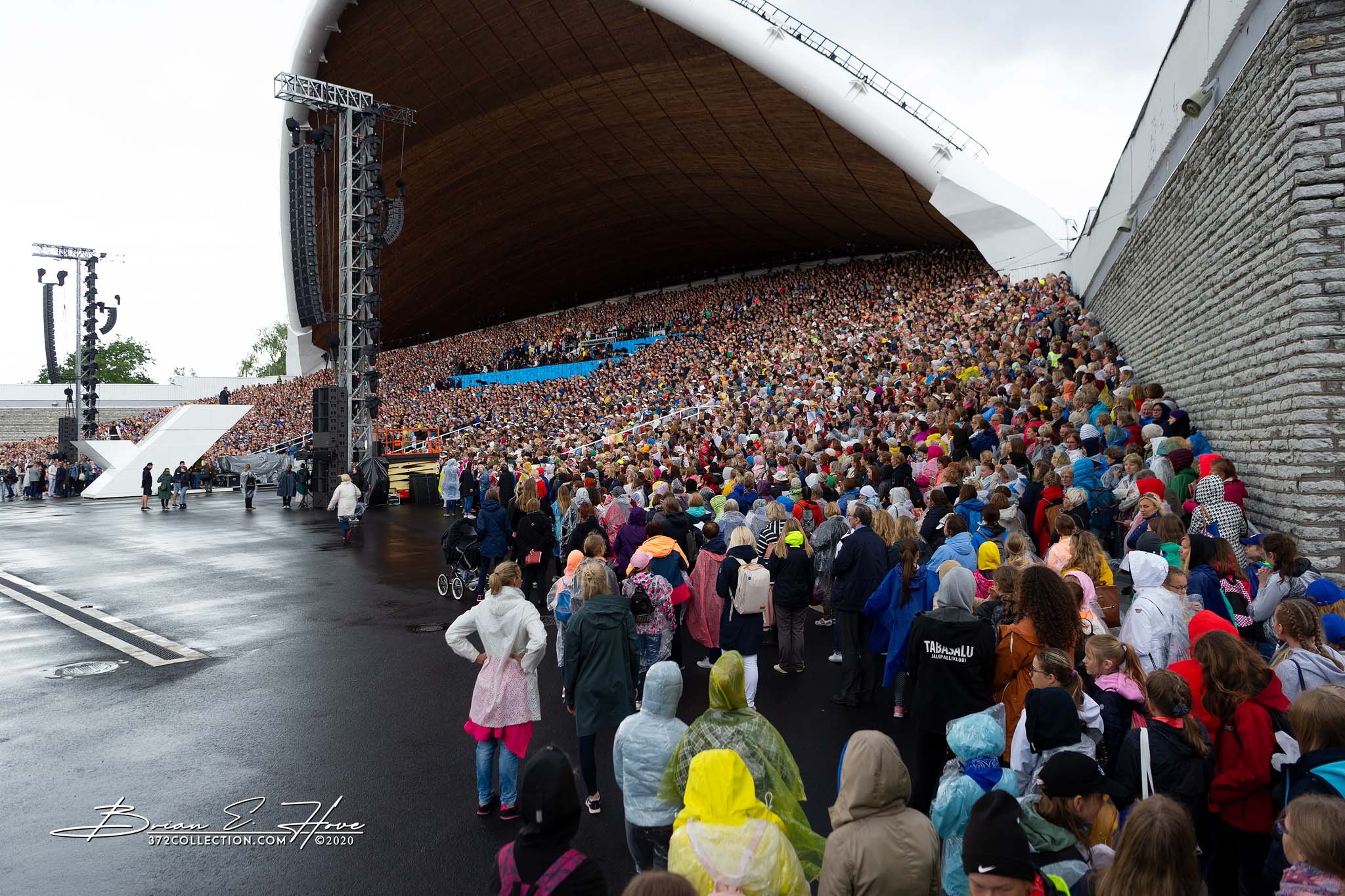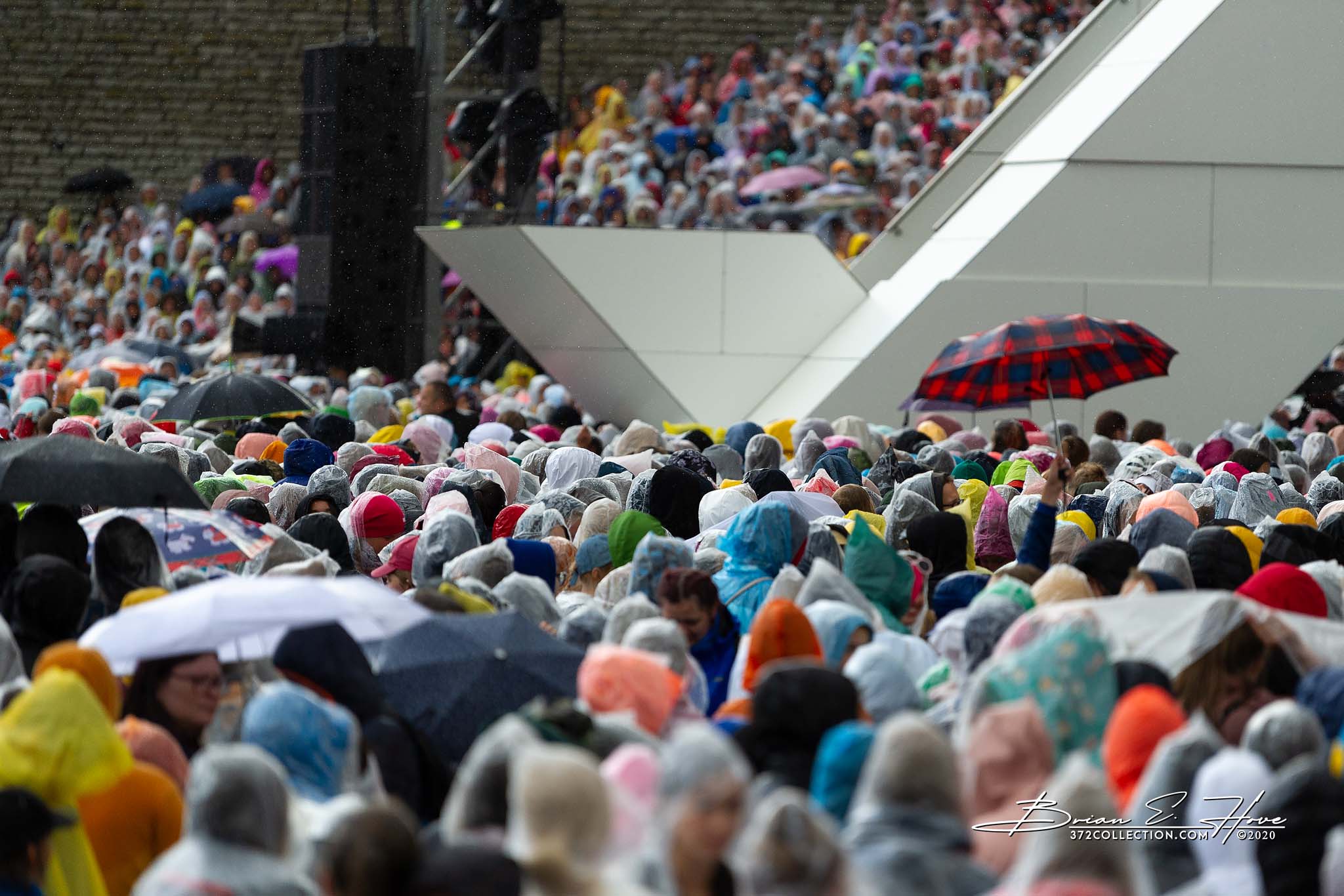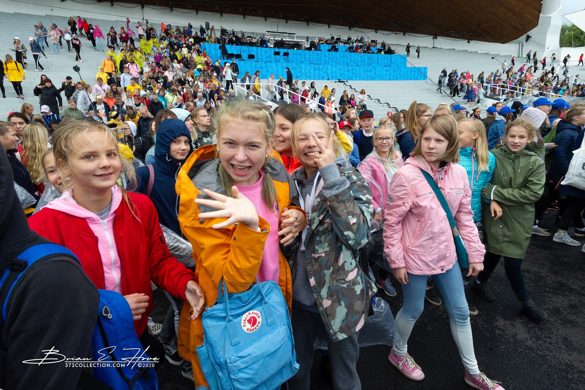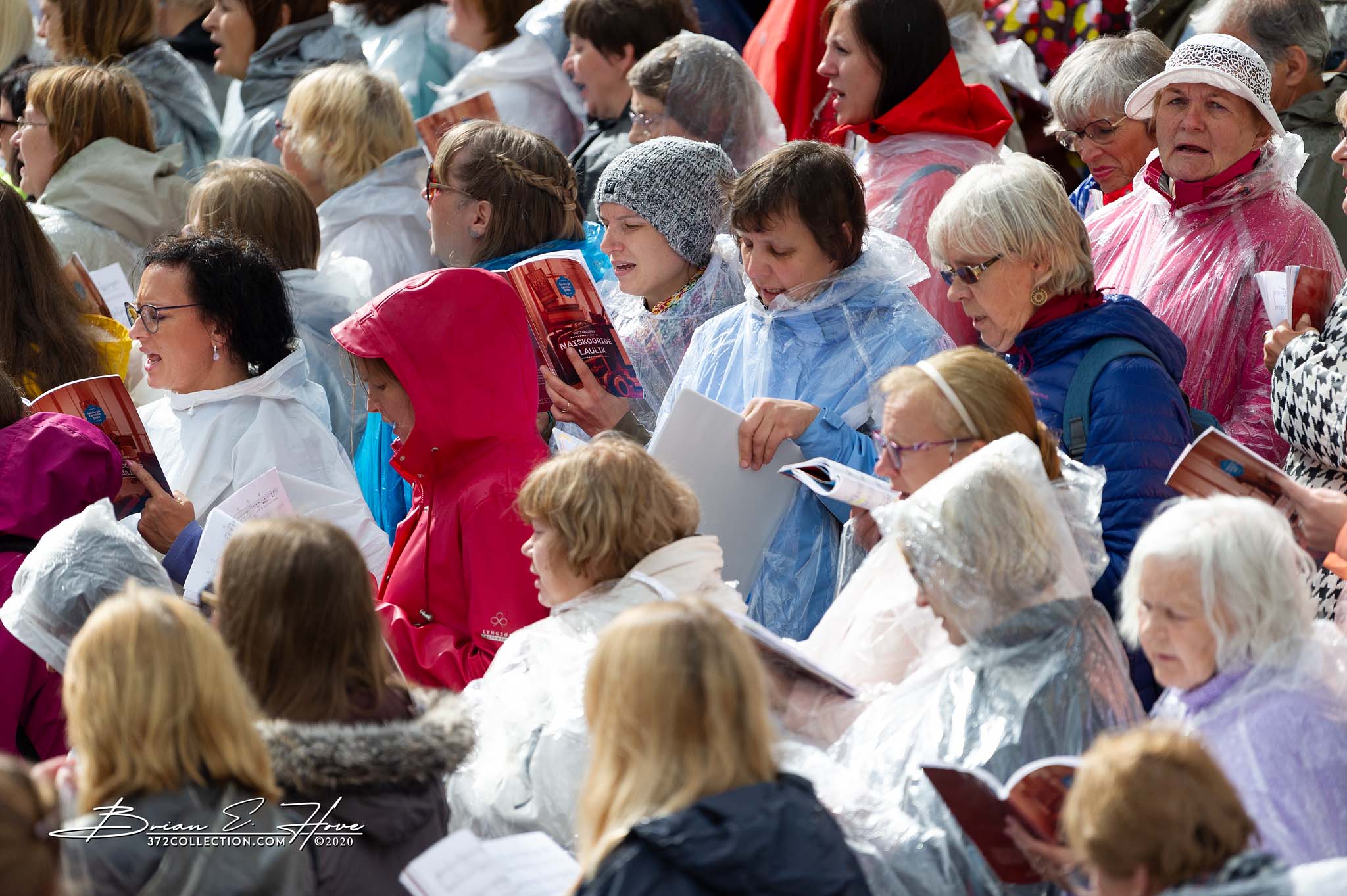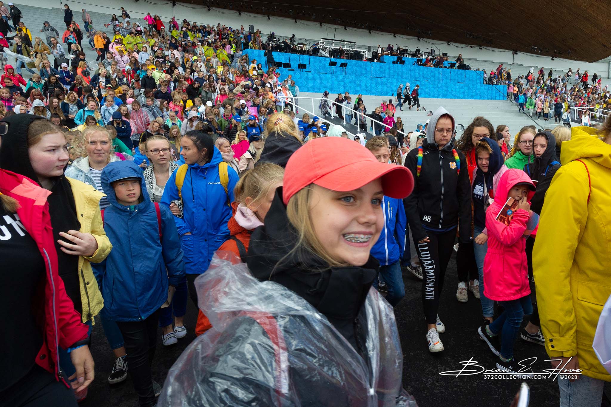 Rain was in the forecast for the weekend. Of course, this was not ideal. Regardless, the show would go on. As it turned out, Mother Nature opened the water faucet on Friday practice rather than Saturday and Sunday’s main events. Regardless, practice would go on. First up, were the youngsters. They persevered through the session, but when it was over they wasted no time exiting the stage. Then it was the adults’ turn. While the damp conditions made the singers’ performance more challenging, the colorful mix of rain jackets and umbrellas made an interesting visual.