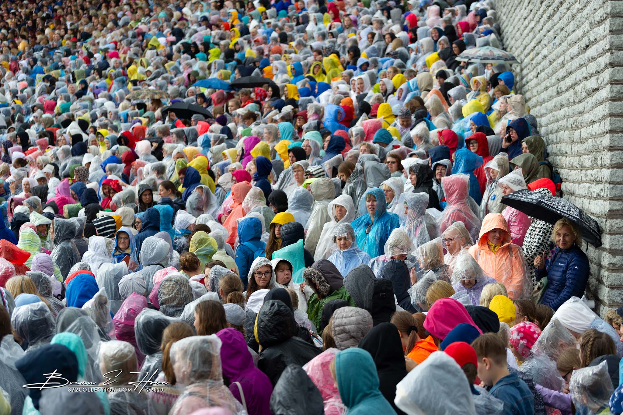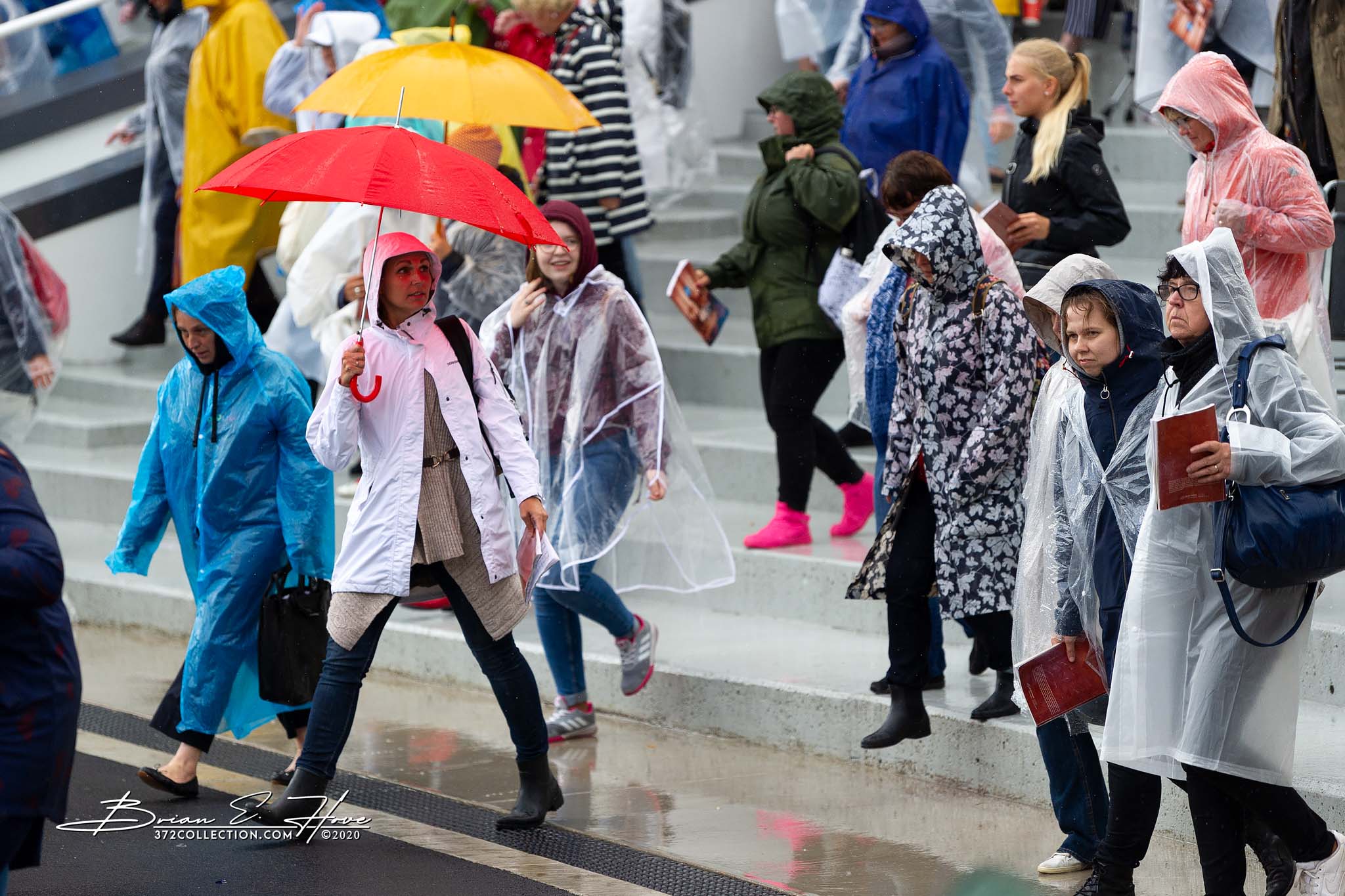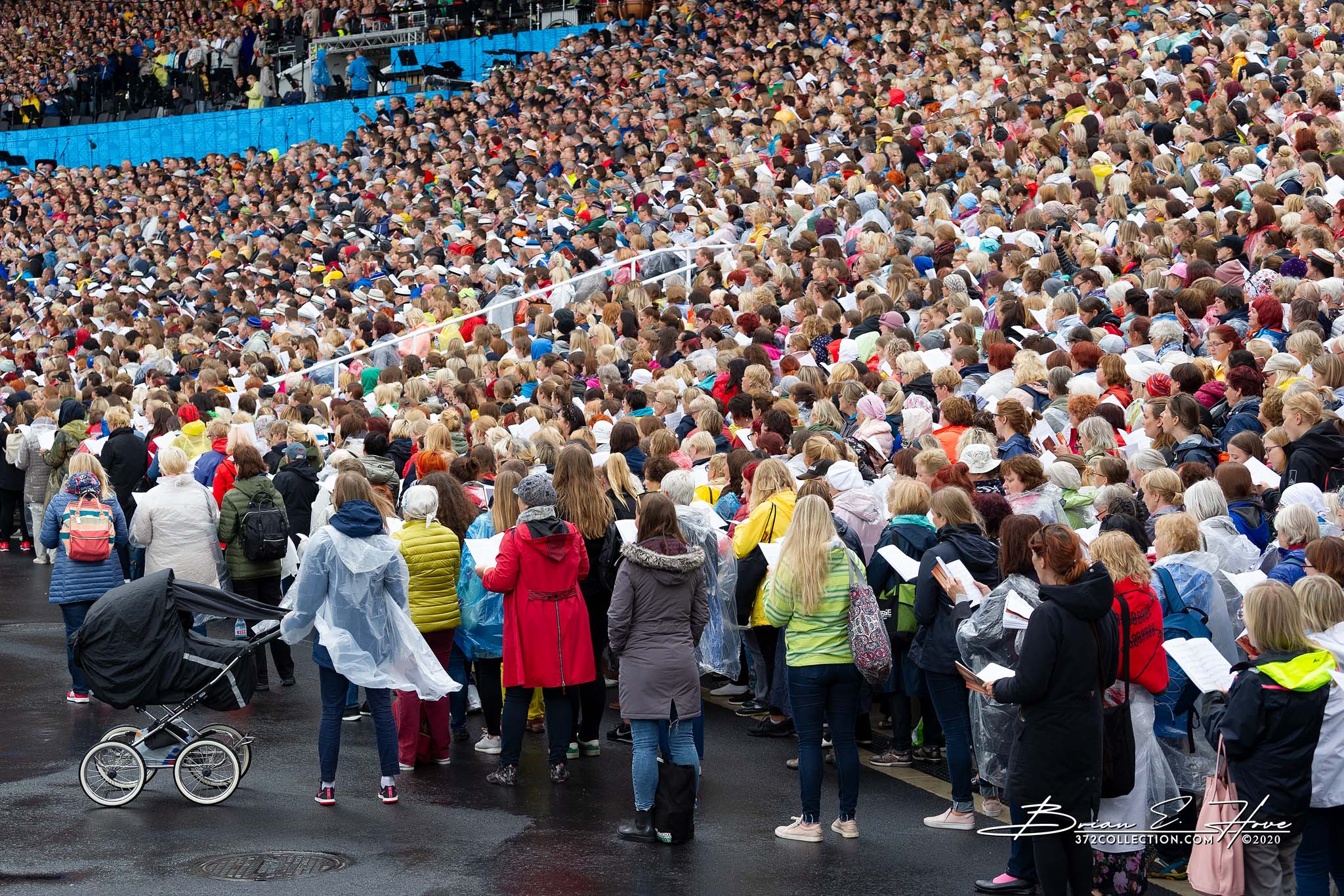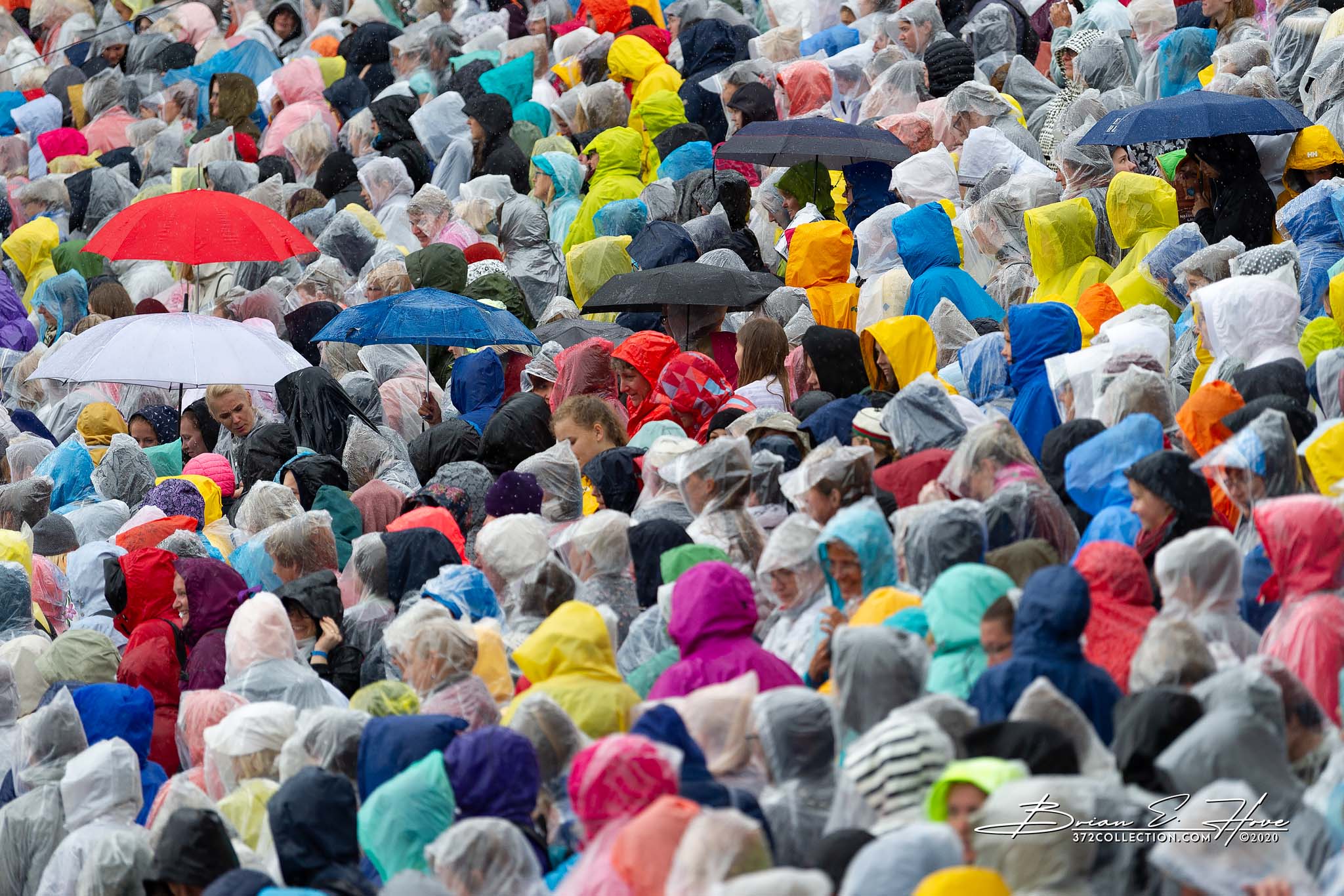 Rain was in the forecast for the weekend. Of course, this was not ideal. Regardless, the show would go on. As it turned out, Mother Nature opened the water faucet on Friday practice rather than Saturday and Sunday’s main events. Regardless, practice would go on. First up, were the youngsters. They persevered through the session, but when it was over they wasted no time exiting the stage. Then it was the adults’ turn. While the damp conditions made the singers’ performance more challenging, the colorful mix of rain jackets and umbrellas made an interesting visual.