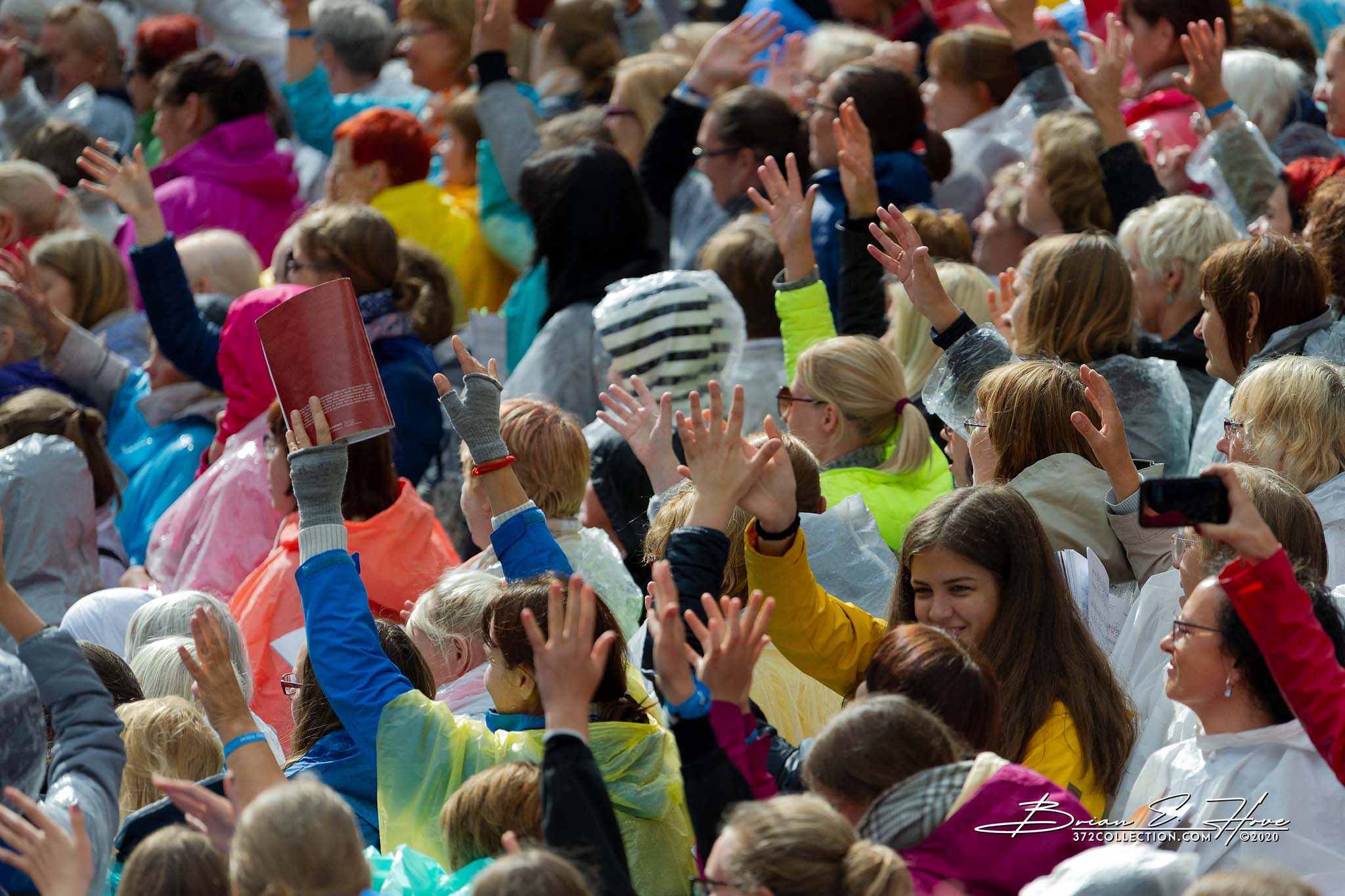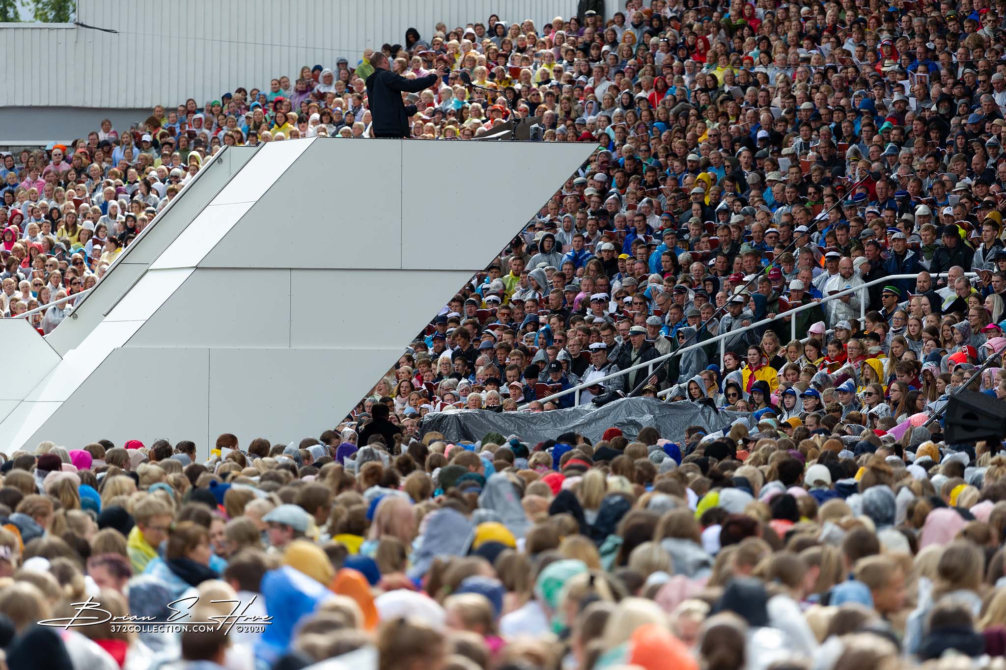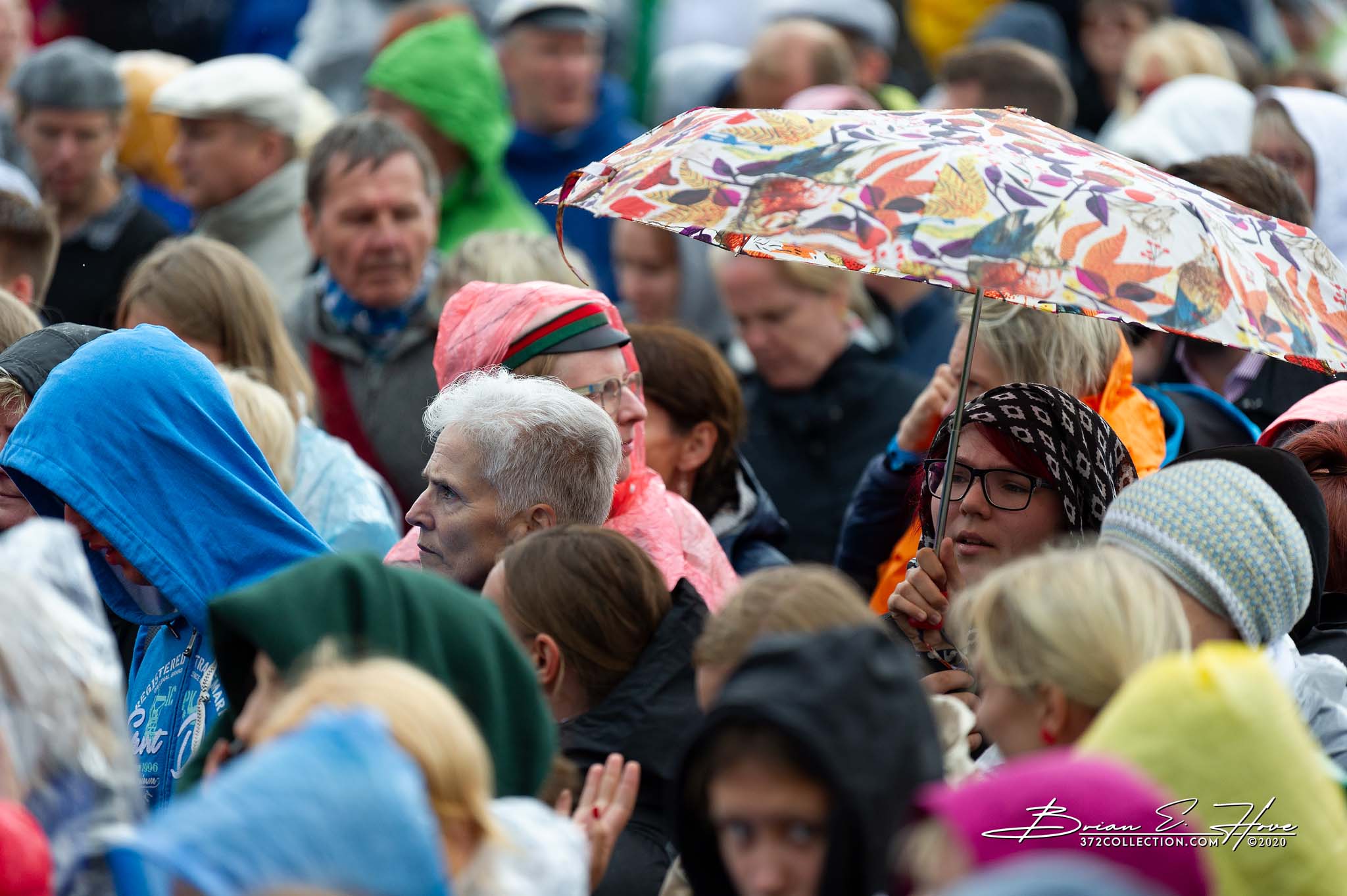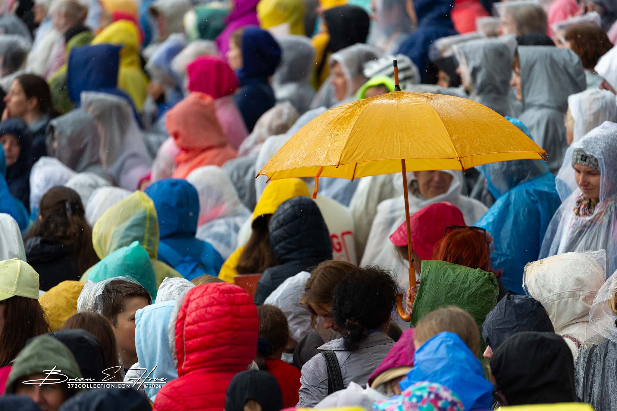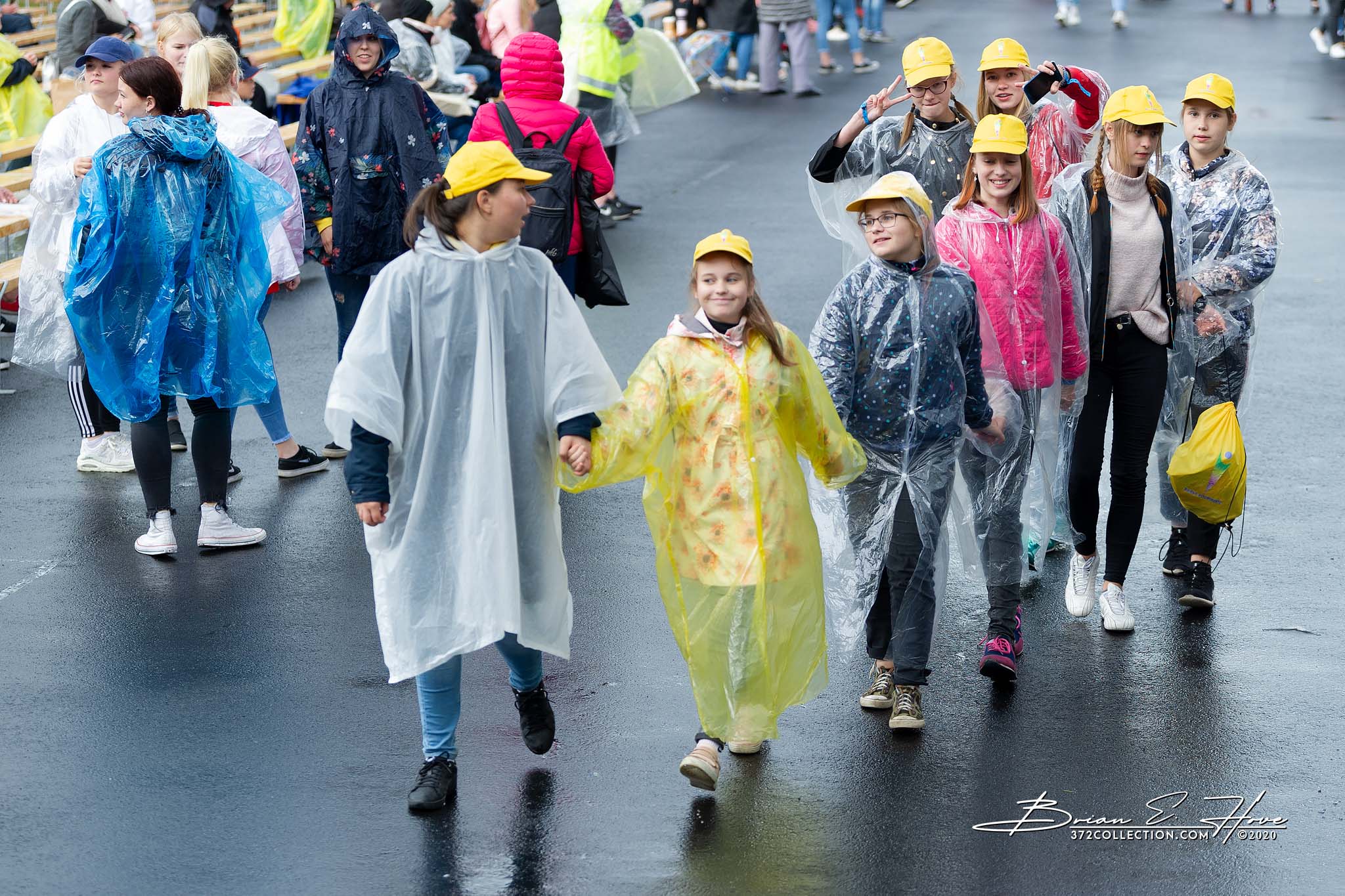 Rain was in the forecast for the weekend. Of course, this was not ideal. Regardless, the show would go on. As it turned out, Mother Nature opened the water faucet on Friday practice rather than Saturday and Sunday’s main events. Regardless, practice would go on. First up, were the youngsters. They persevered through the session, but when it was over they wasted no time exiting the stage. Then it was the adults’ turn. While the damp conditions made the singers’ performance more challenging, the colorful mix of rain jackets and umbrellas made an interesting visual.
