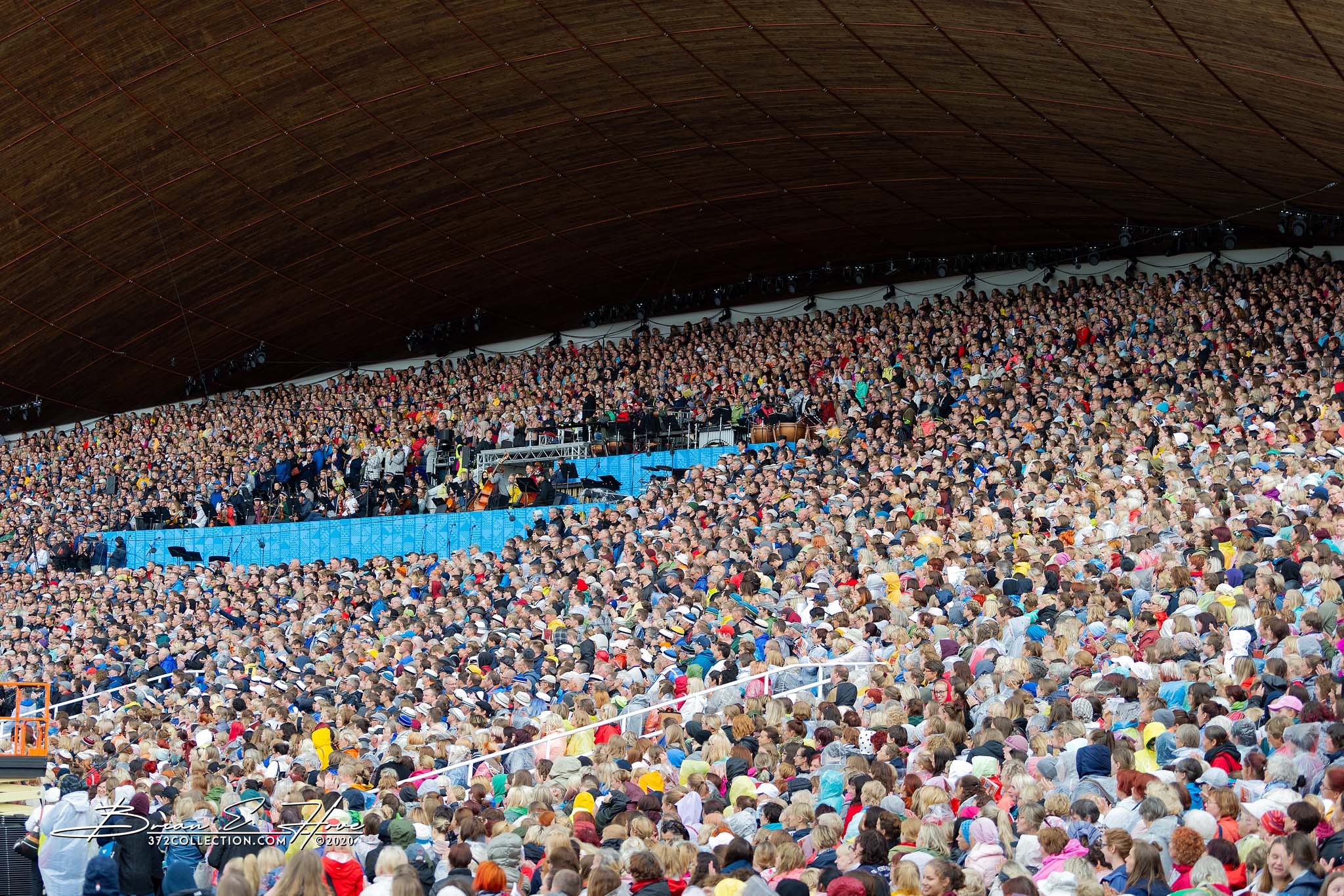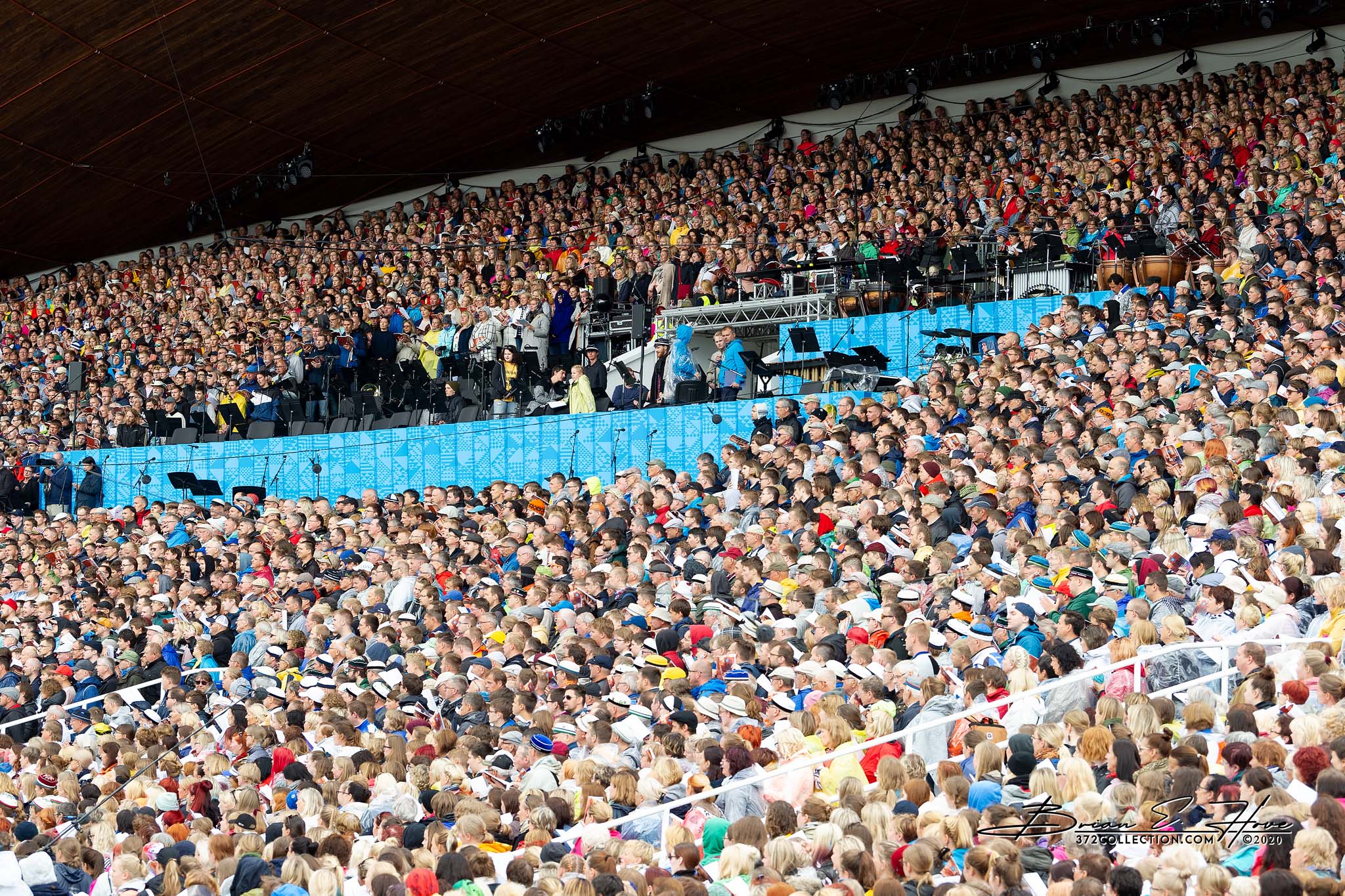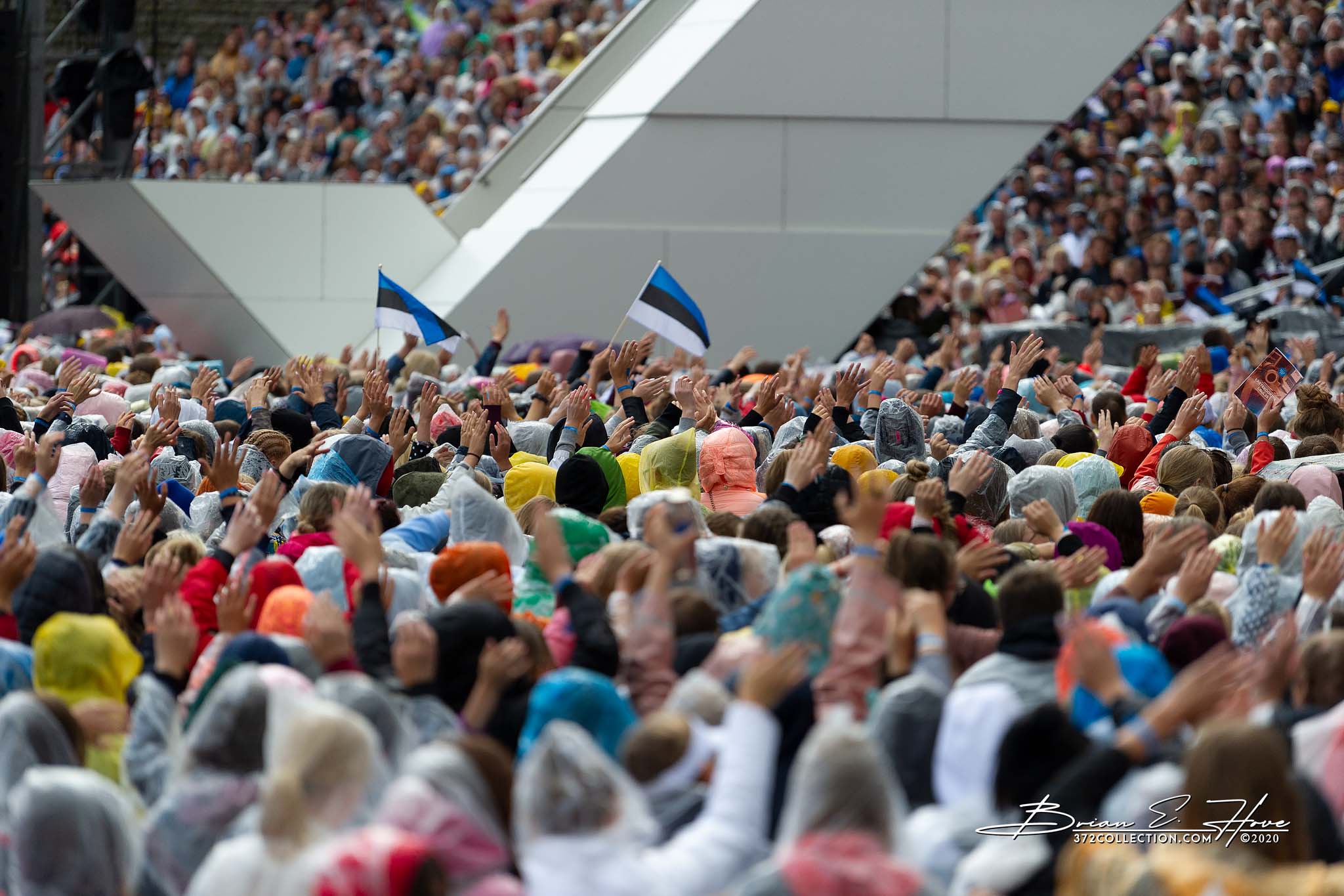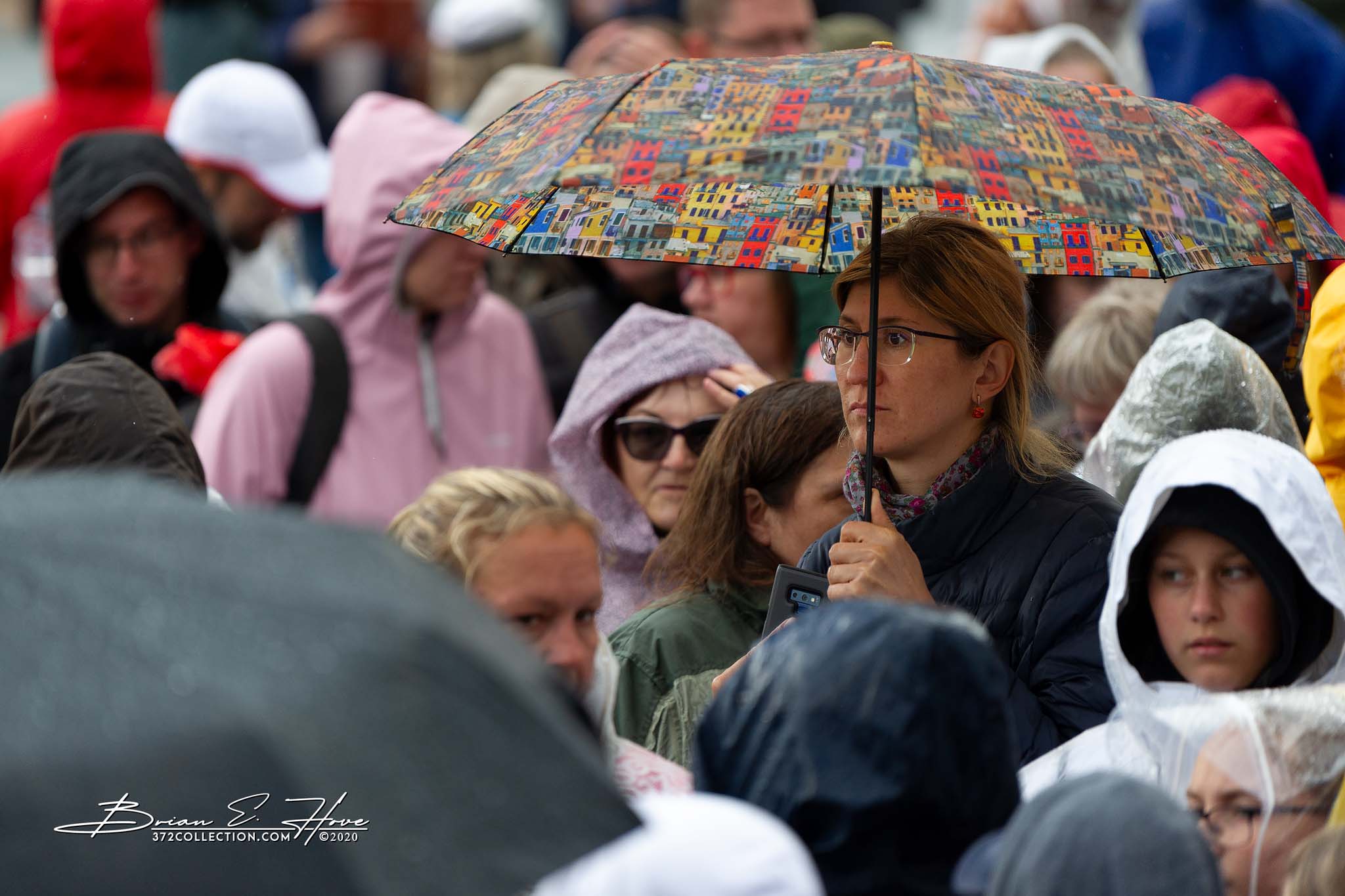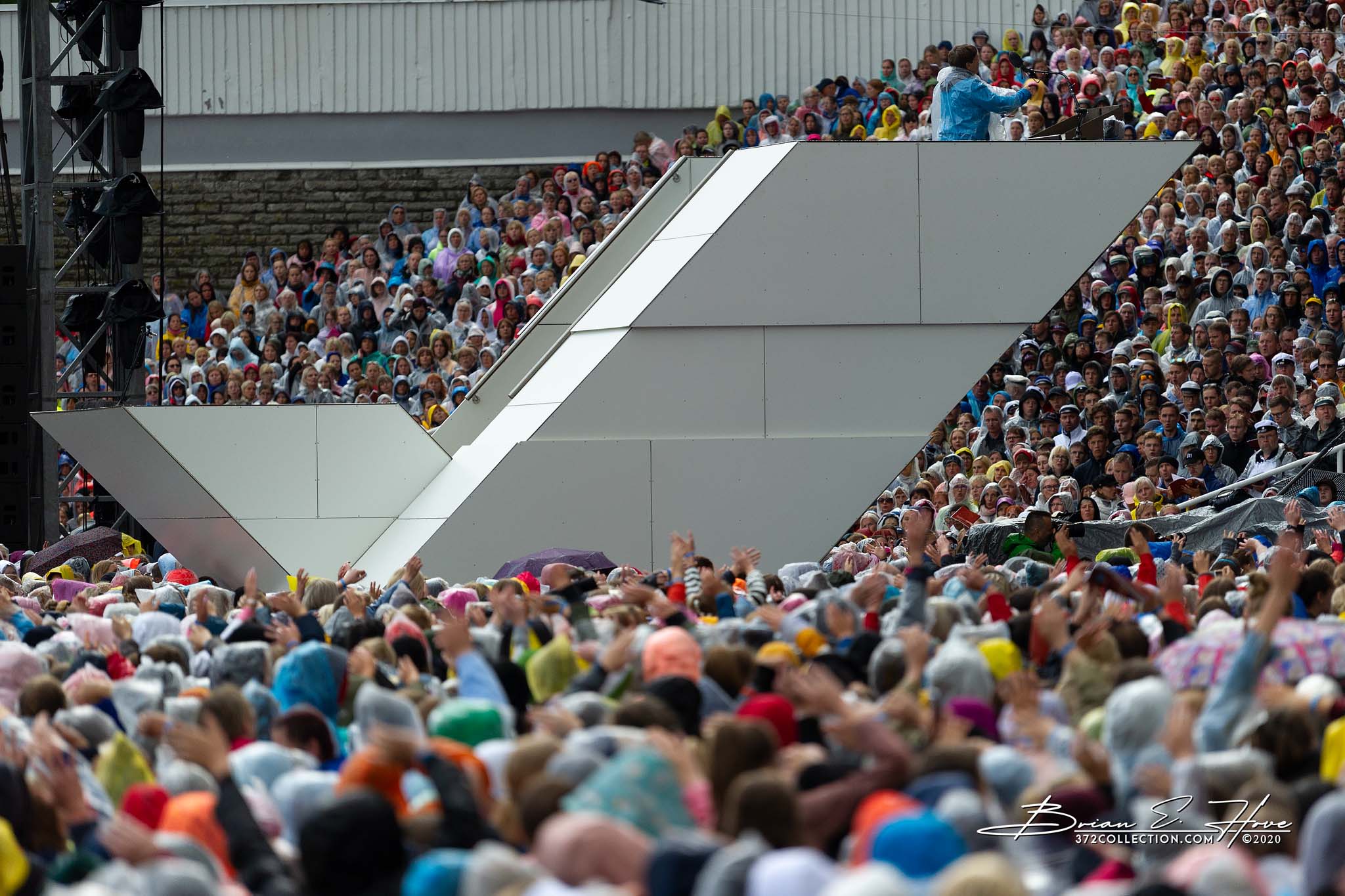 Rain was in the forecast for the weekend. Of course, this was not ideal. Regardless, the show would go on. As it turned out, Mother Nature opened the water faucet on Friday practice rather than Saturday and Sunday’s main events. Regardless, practice would go on. First up, were the youngsters. They persevered through the session, but when it was over they wasted no time exiting the stage. Then it was the adults’ turn. While the damp conditions made the singers’ performance more challenging, the colorful mix of rain jackets and umbrellas made an interesting visual.